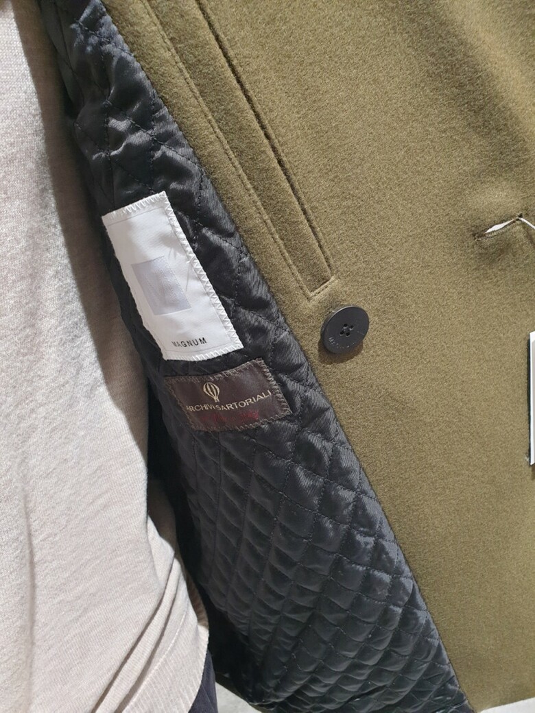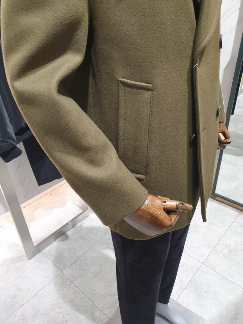 BON 22FW 카키 이태리 아르츠비 사르토리알리 울 혼방 더블 피코트 BN2WHA560KH