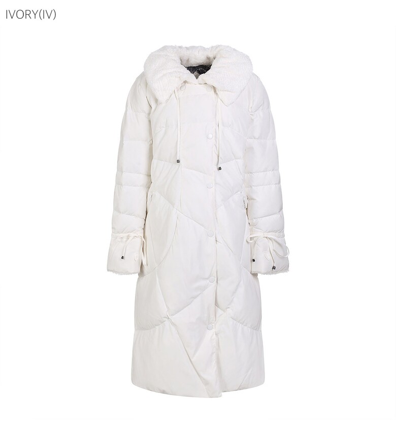 [팜스프링스] 여성 퍼카라배색 롱다운점퍼_SWDL214653