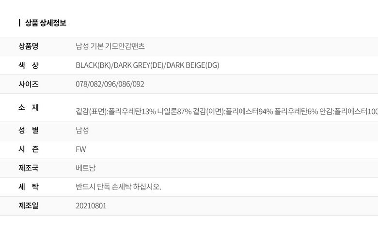 [팜스프링스] 남성 기본 기모안감팬츠_SPEM214752