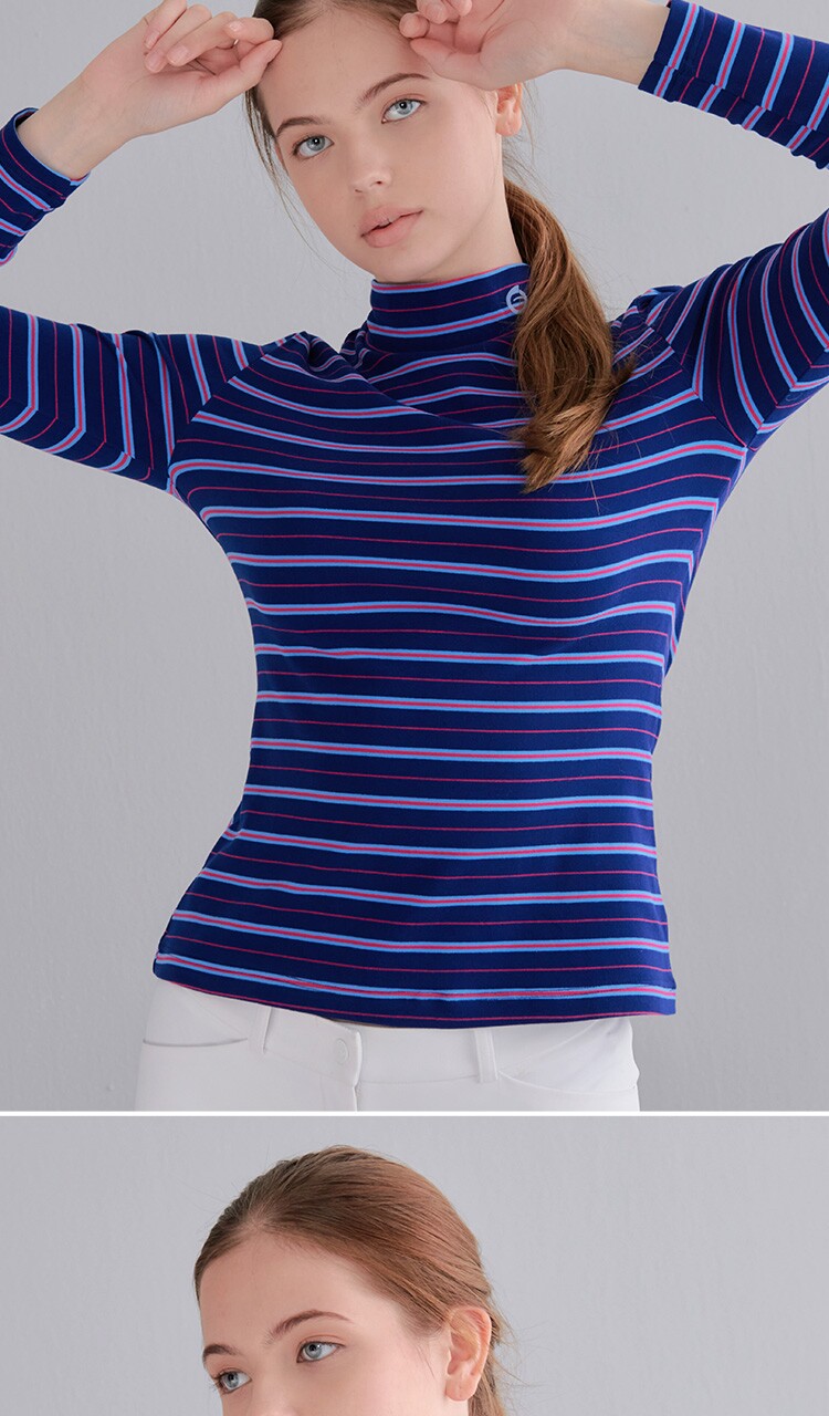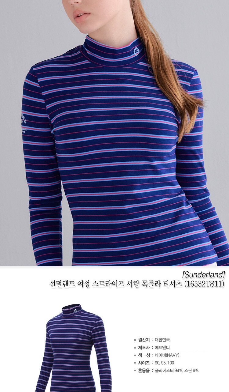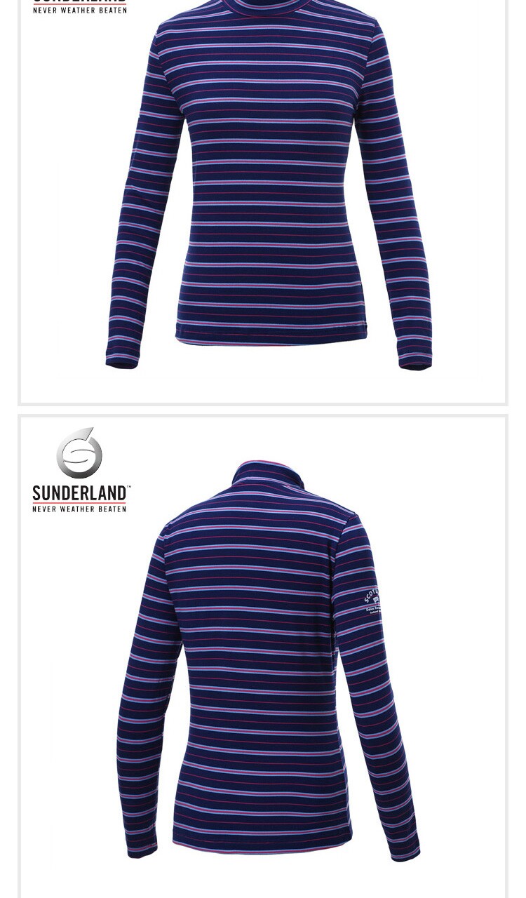 선덜랜드 여성 더블 스트라이프 셔링 스판 목폴라 긴팔티셔츠 - 16532TS11