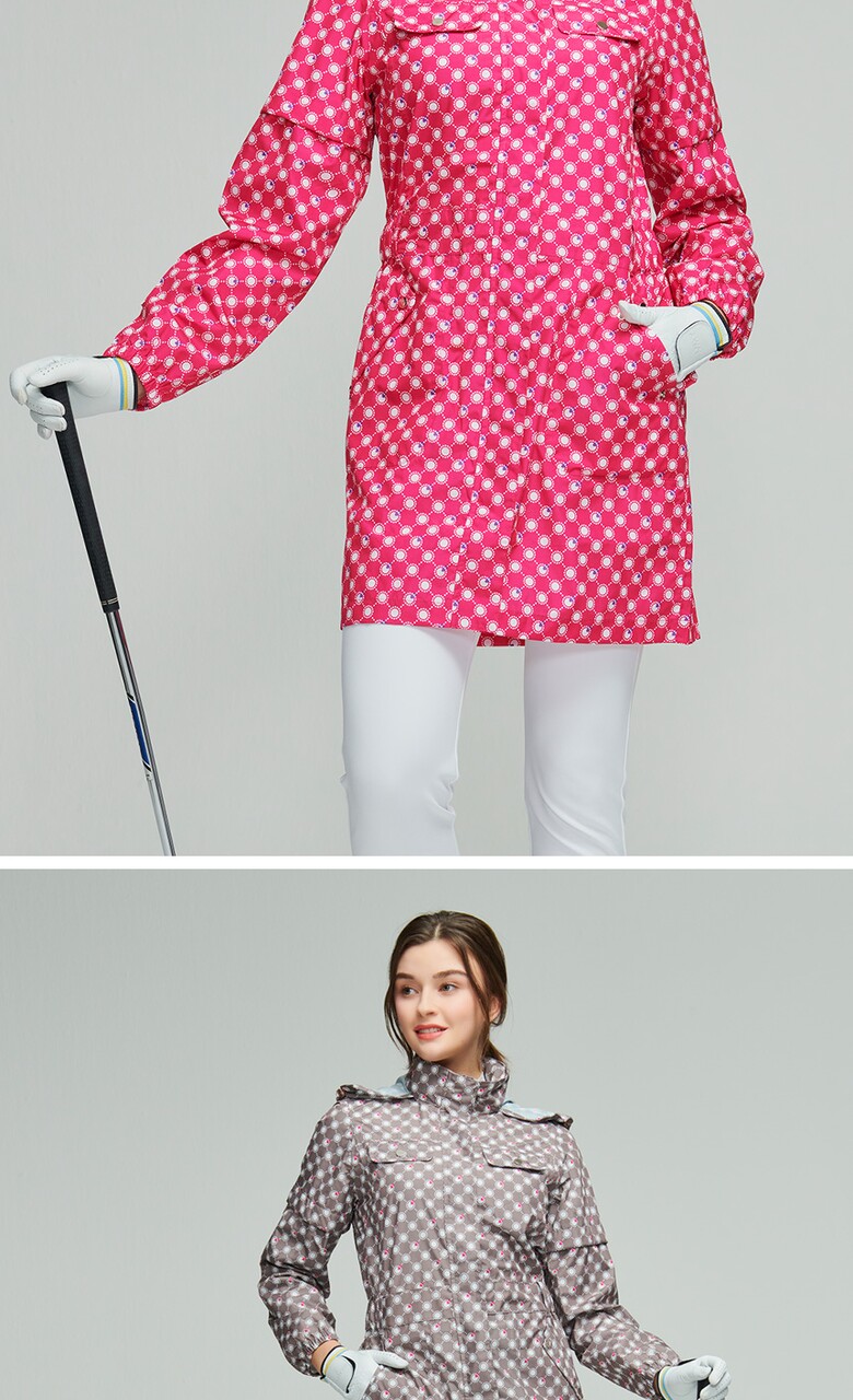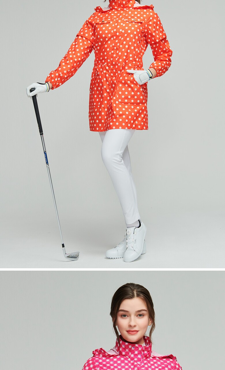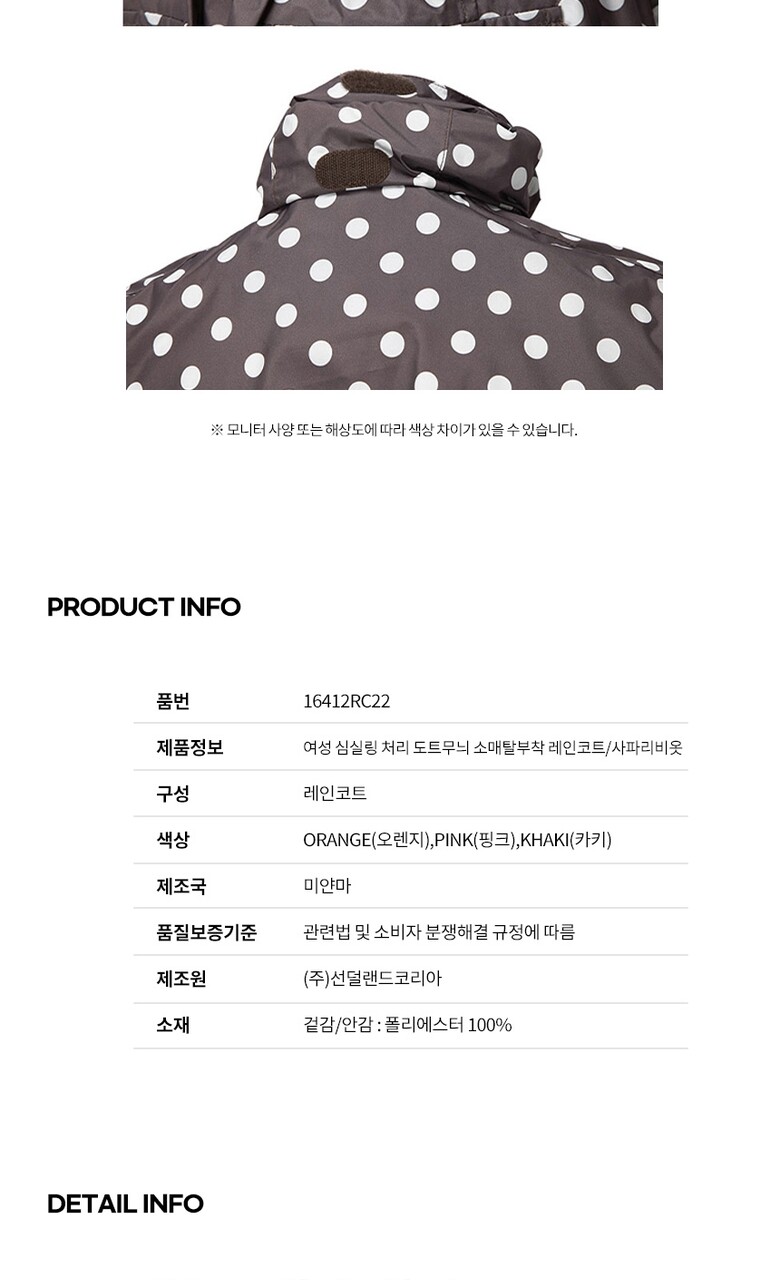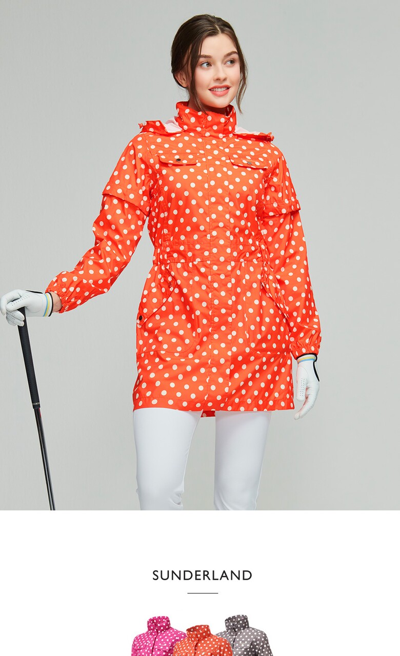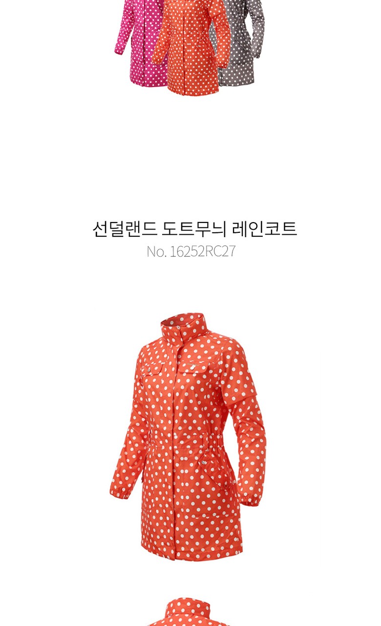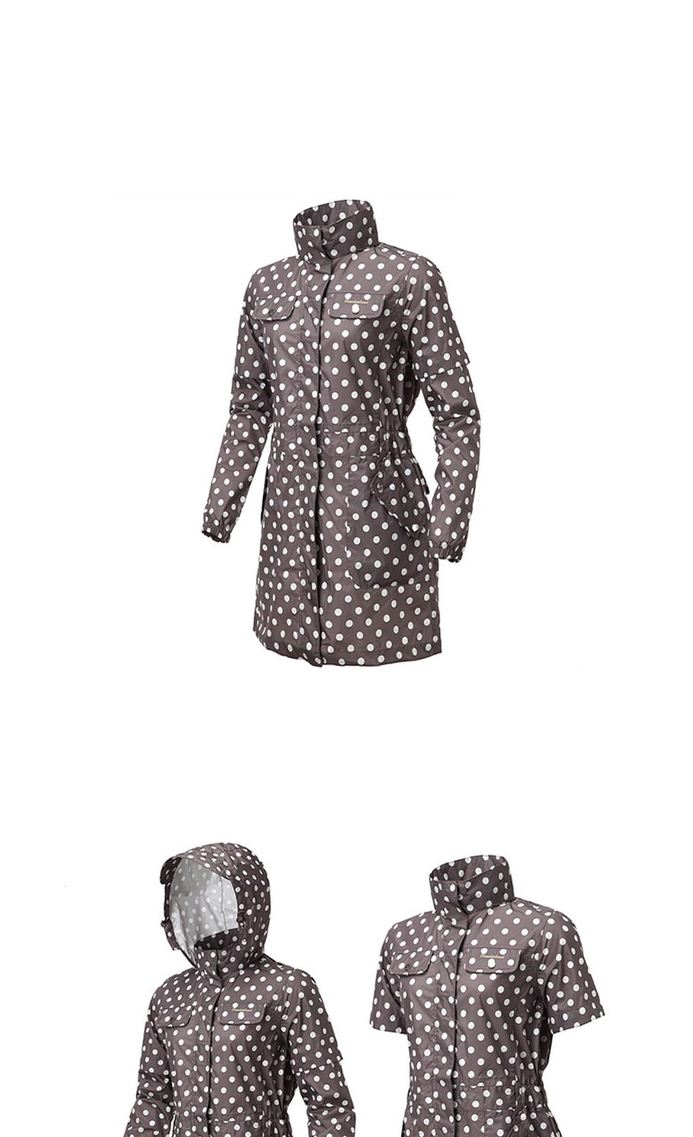 선덜랜드 여성 심실링처리 도트무늬 소매탈부착 레인코트/사파리비옷 - 16412RC22