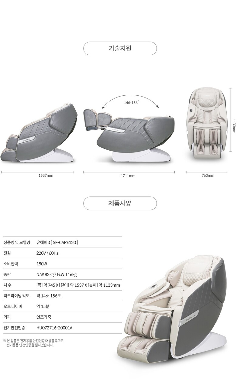 1. 모델명(품번) 사파헬스케어 안마의자 SF-care120