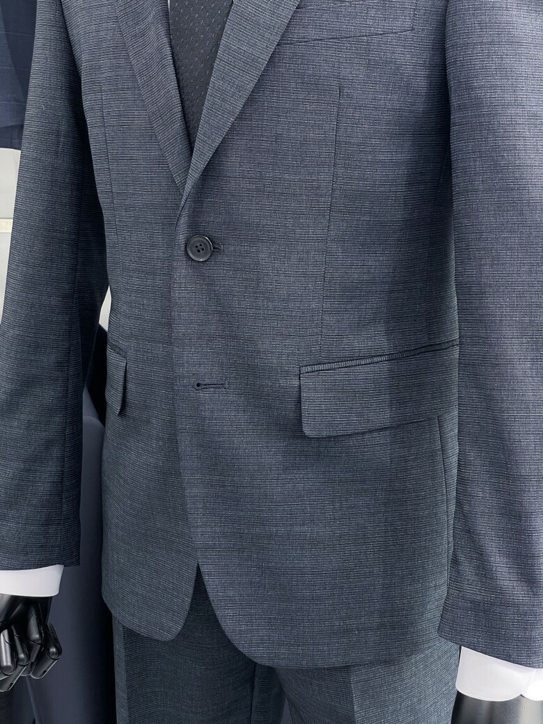 세련된 네이비 색상의 짜임정장입니다.