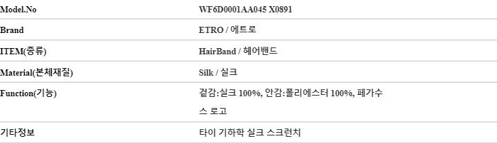 에트로 WF6D0001AA045 X0891 타이 기하학 실크 스크런치 여성 헤어밴드