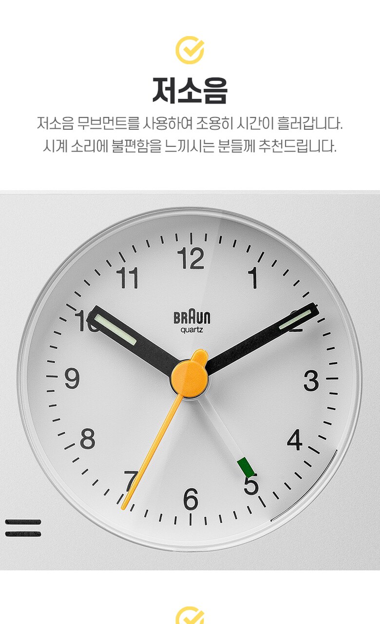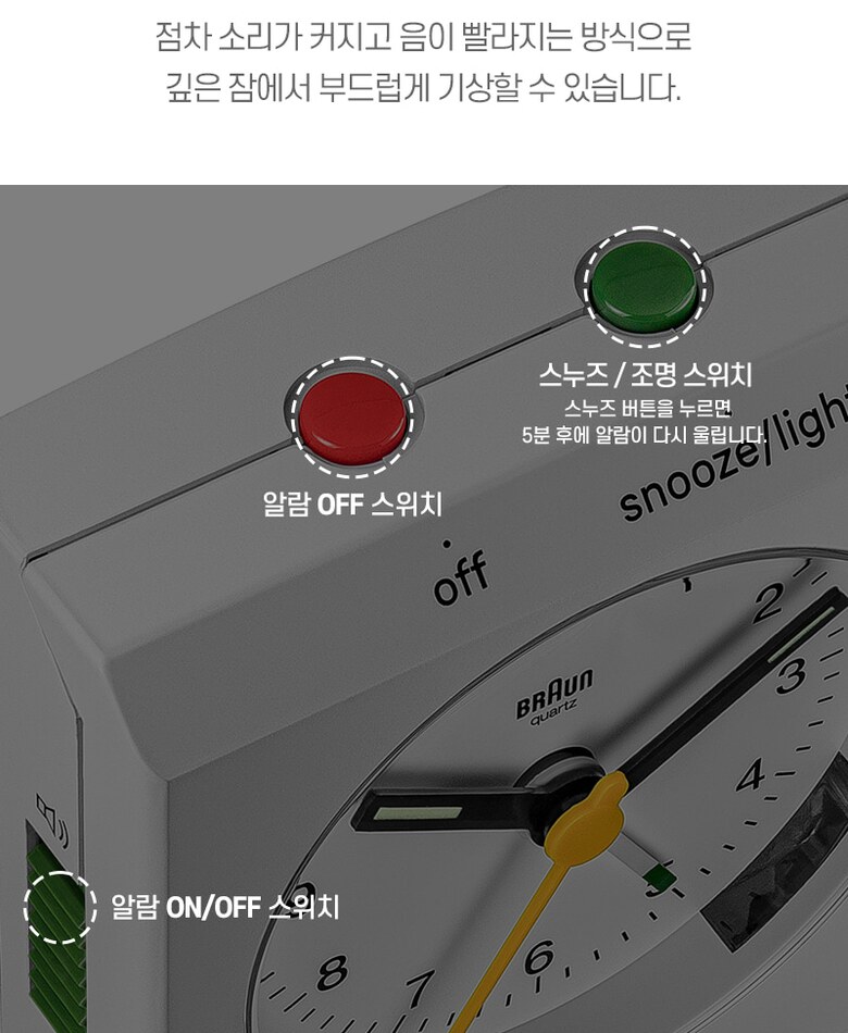 브라운 BRAUN BC05W 클래식 아날로그 트래블 크레센도 알람 저소음 공용 탁상시계