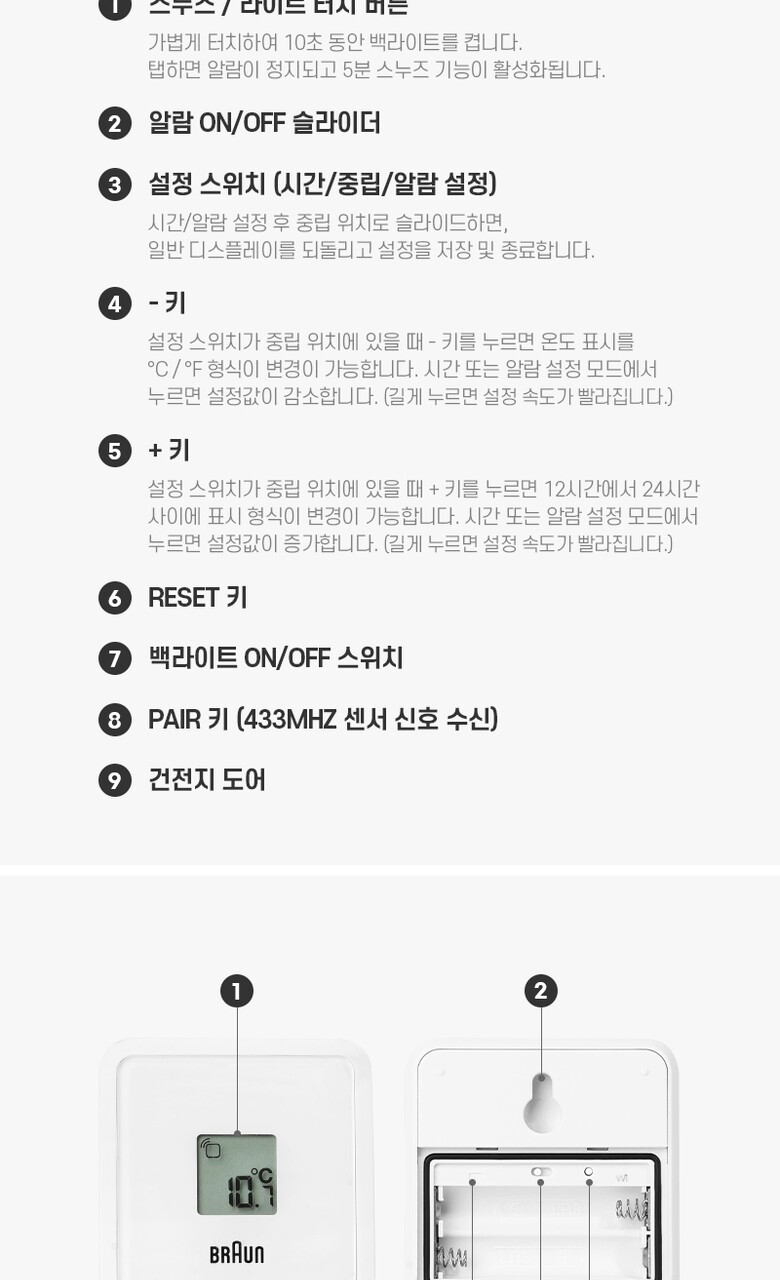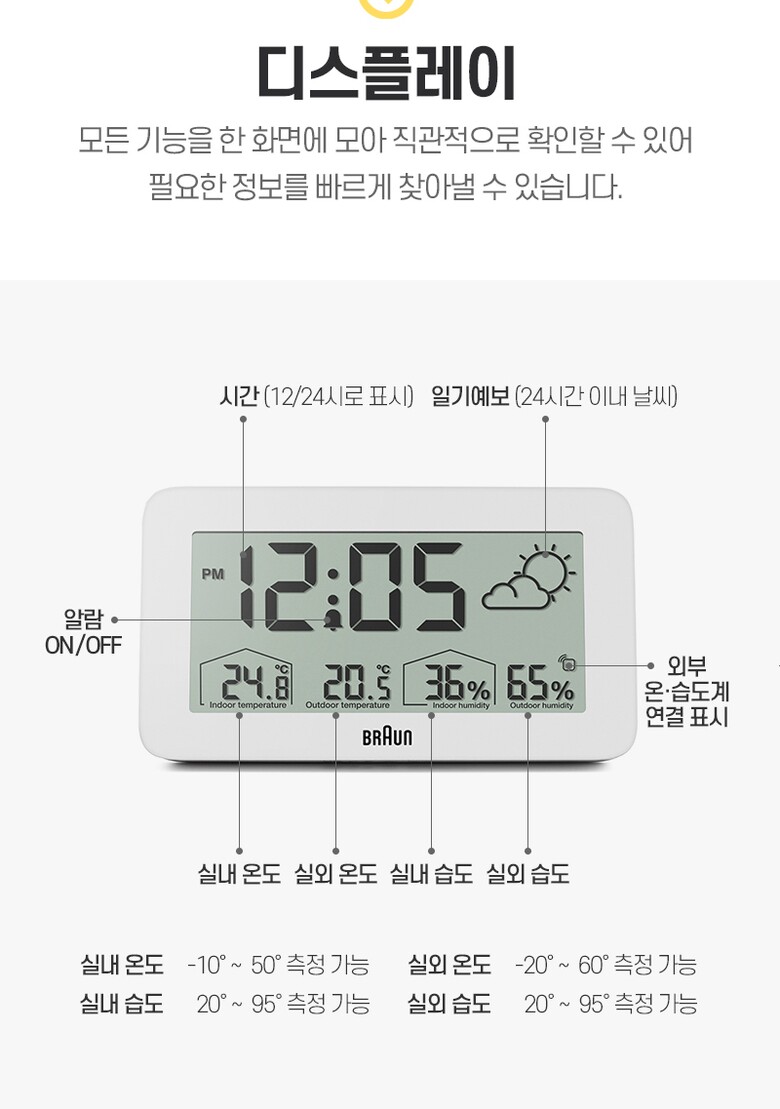 브라운 BRAUN BC13WP 디지털 크레센도 알람 날씨 공용 탁상시계