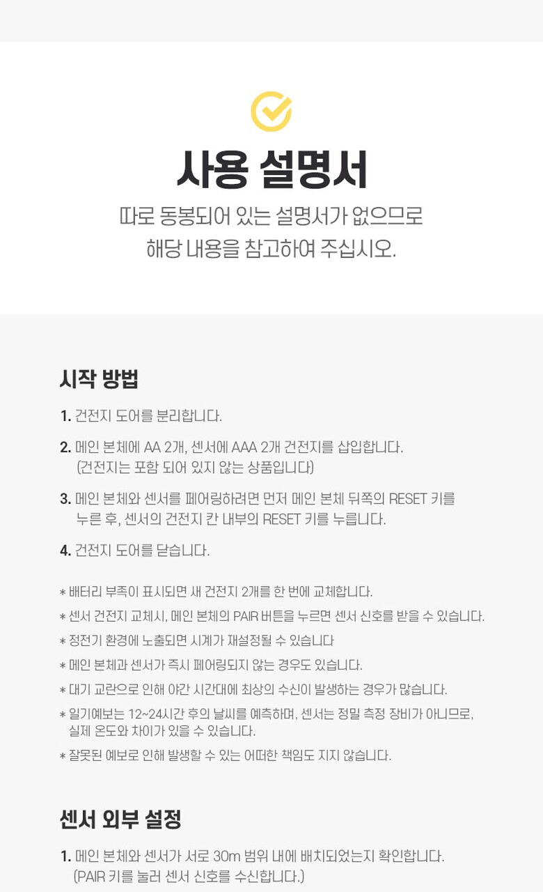 2. 중량 | 본체:157g, 센서:61g (건전지 미포함) |