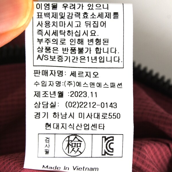 | 6. 세탁방법 및 취급시 주의사항 | 손세탁 |
