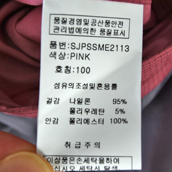 | 1. 제품 소재 (섬유의 조성 또는 혼용률을 백분율로 표시, 기능성인 경우 성적서 또는 허가서) | 나일론95%폴리우레탄5% |
