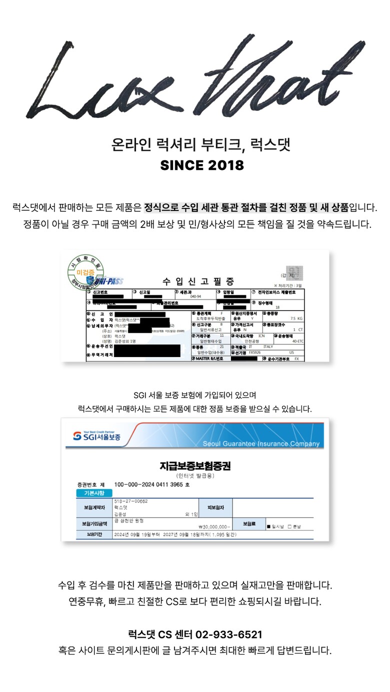 | 1. 제품 소재 (섬유의 조성 또는 혼용률을 백분율로 표시, 기능성인 경우 성적서 또는 허가서) | 상세페이지 참조 |
