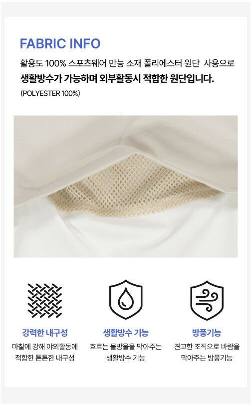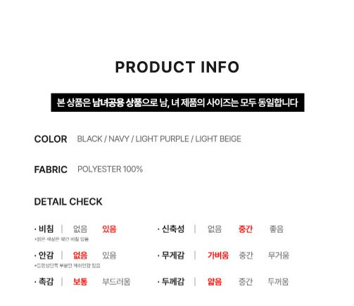 | 1. 제품 소재 (섬유의 조성 또는 혼용률을 백분율로 표시, 기능성인 경우 성적서 또는 허가서) | 상품상세참조 |