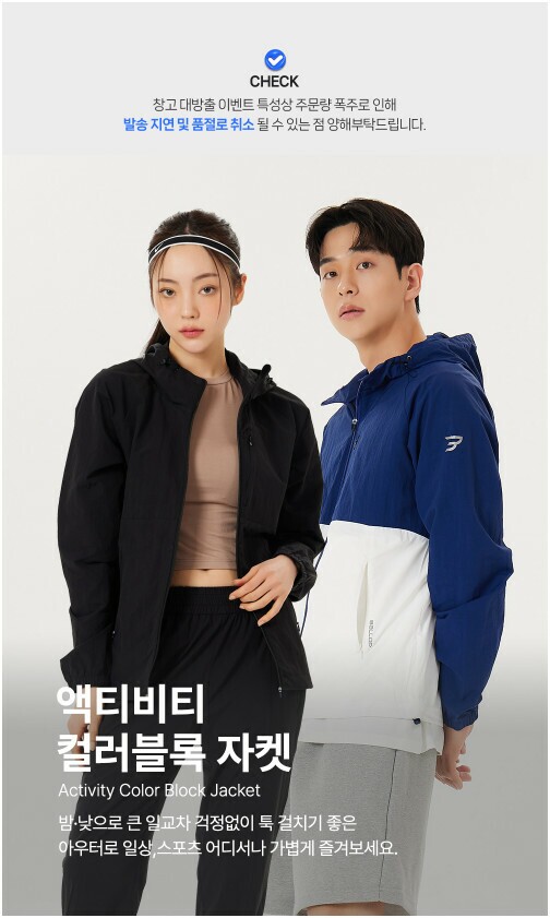 밸롭 남여공용 액티비티 컬러블록 자켓 네이비 BA01020078