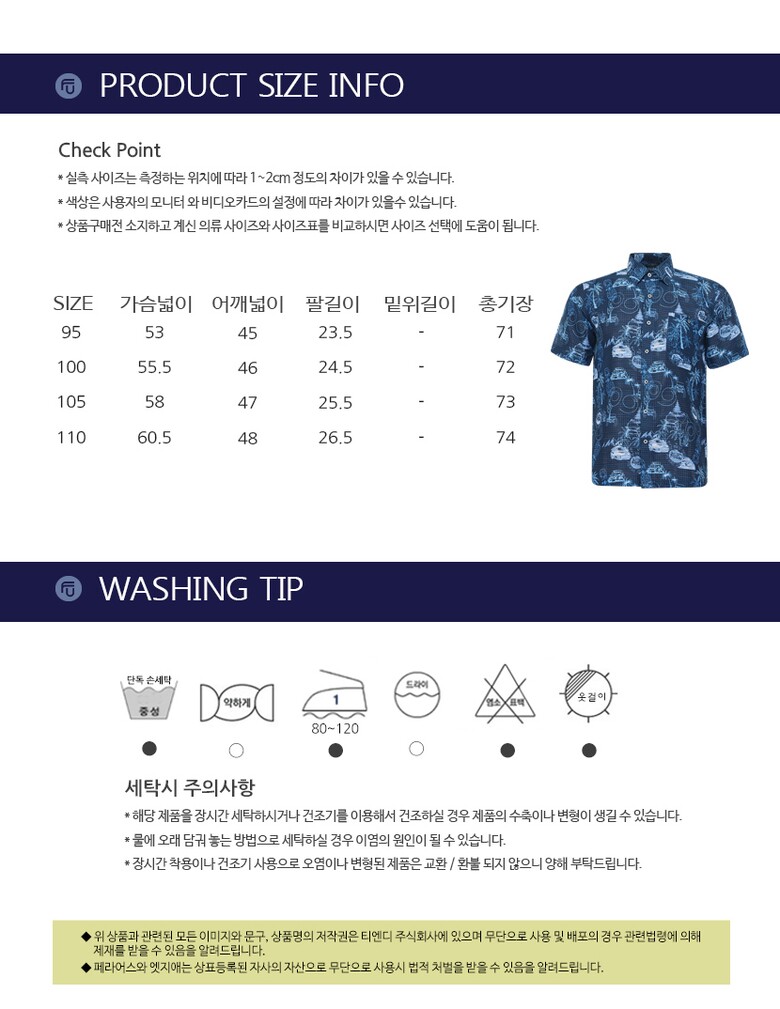 6. 세탁방법 및 취급시 주의사항 상세설명참고