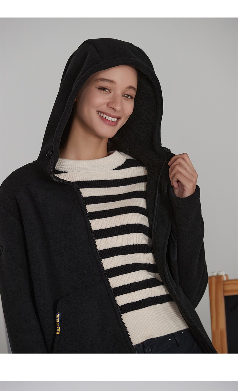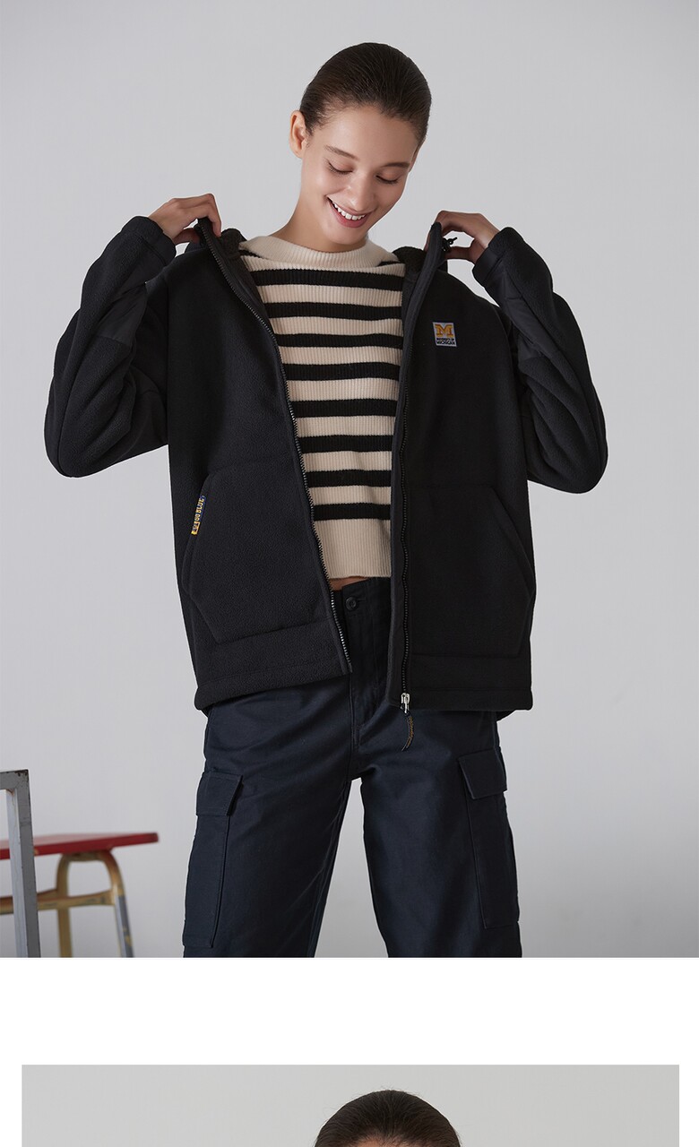 [미시간] 여성 후드 쉐르파 집업 자켓 블랙