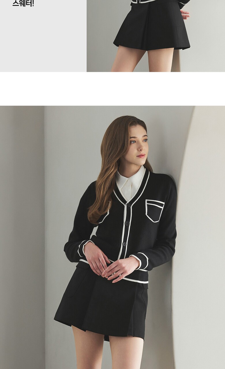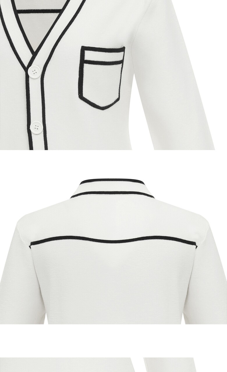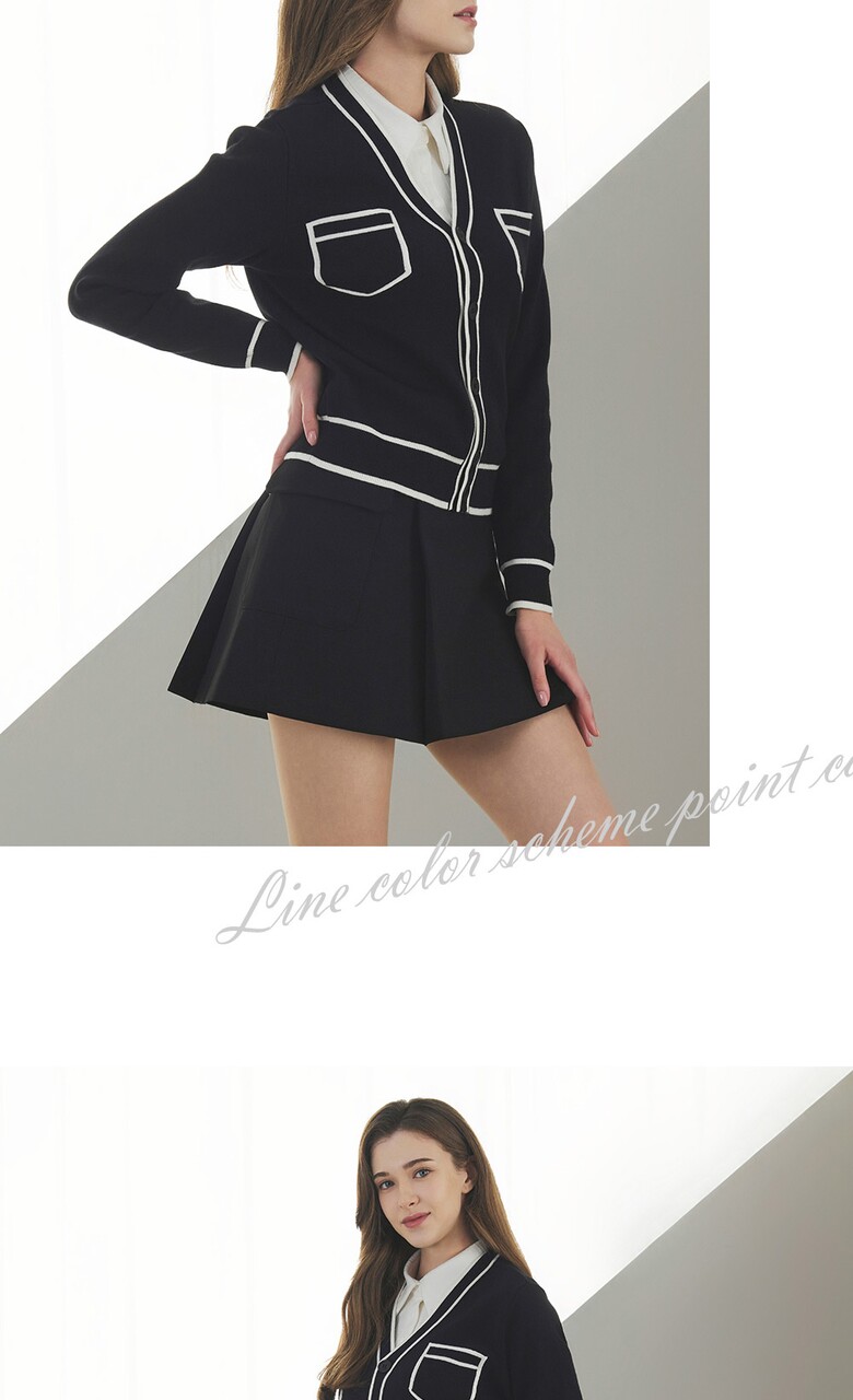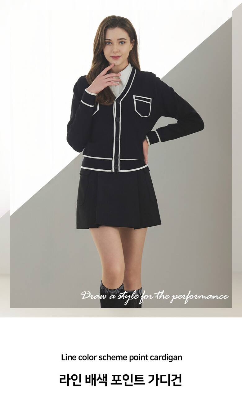 듀빅 여성 라인 배색포인트 니트 가디건 DE3WSC276