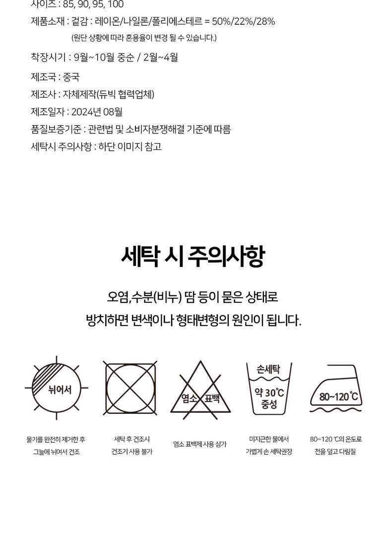 6. 세탁방법 및 취급시 주의사항 | 상품 이미지 참조 |
