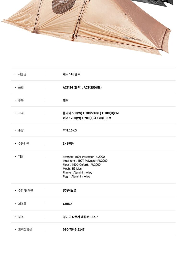 1. 품명 및 모델명 | 제니스타 텐트 ACT-24 ACTT-25 |