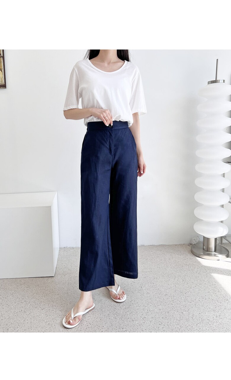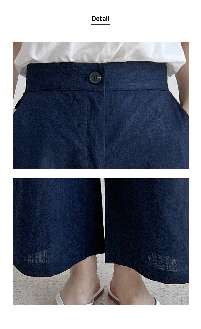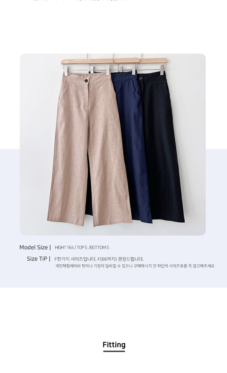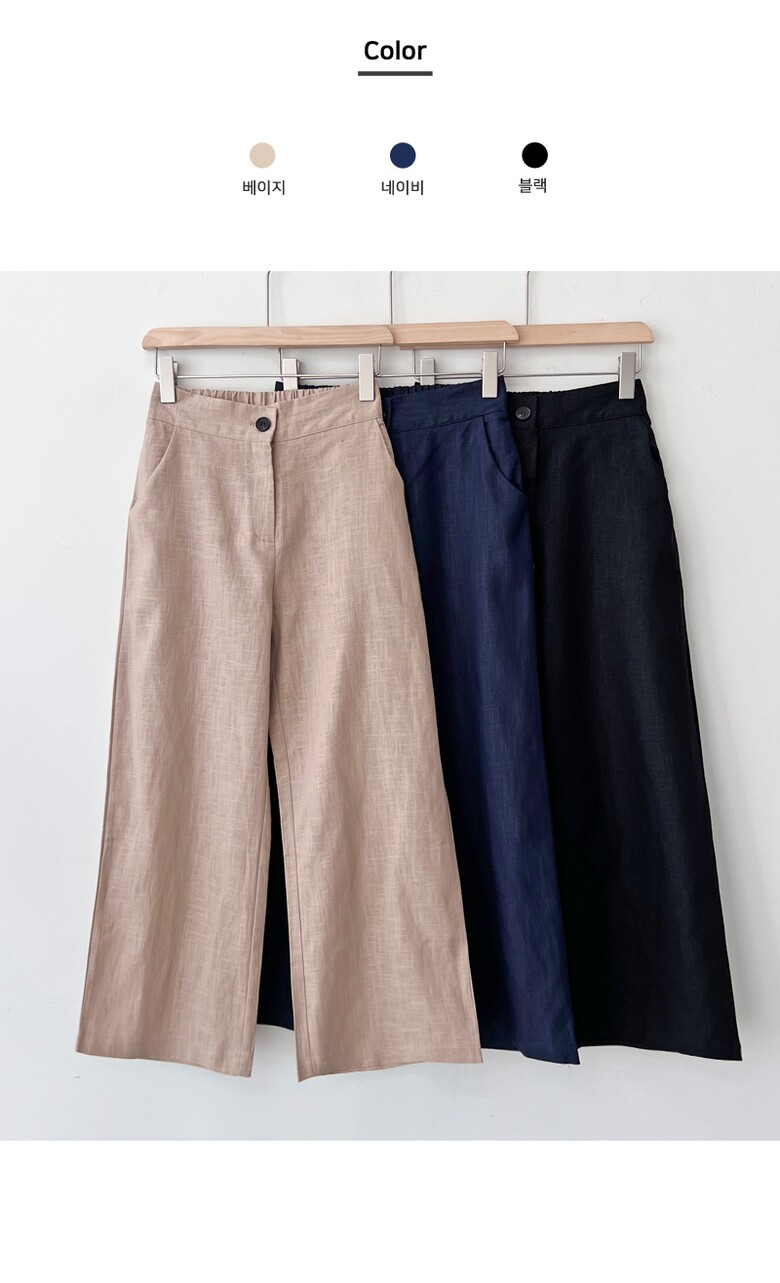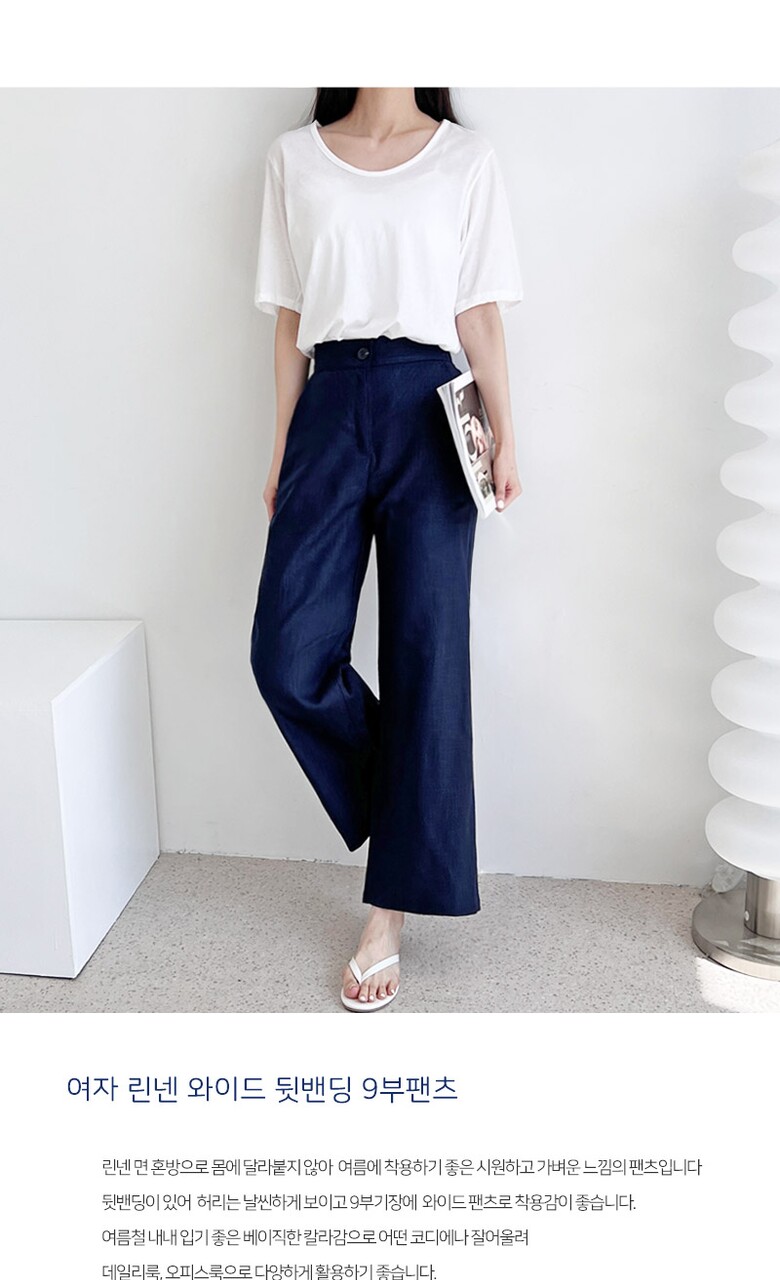 여자 린넨 와이드 뒷밴딩 9부 팬츠 여성 바지