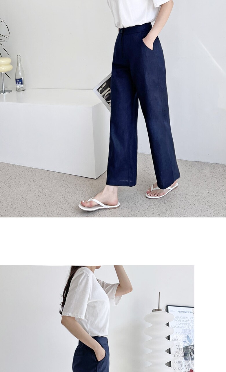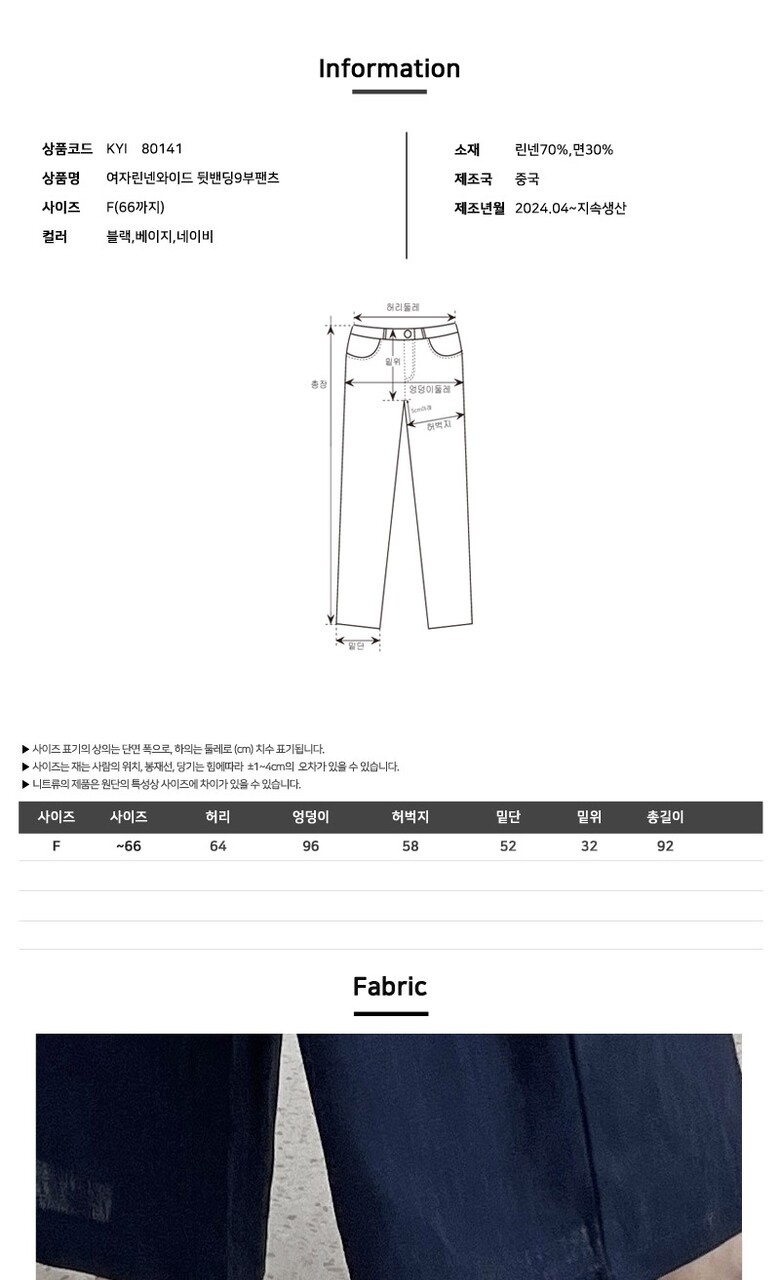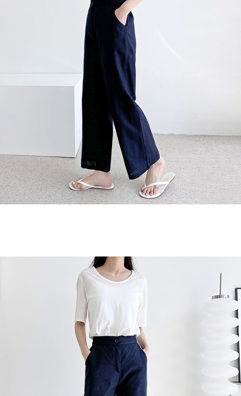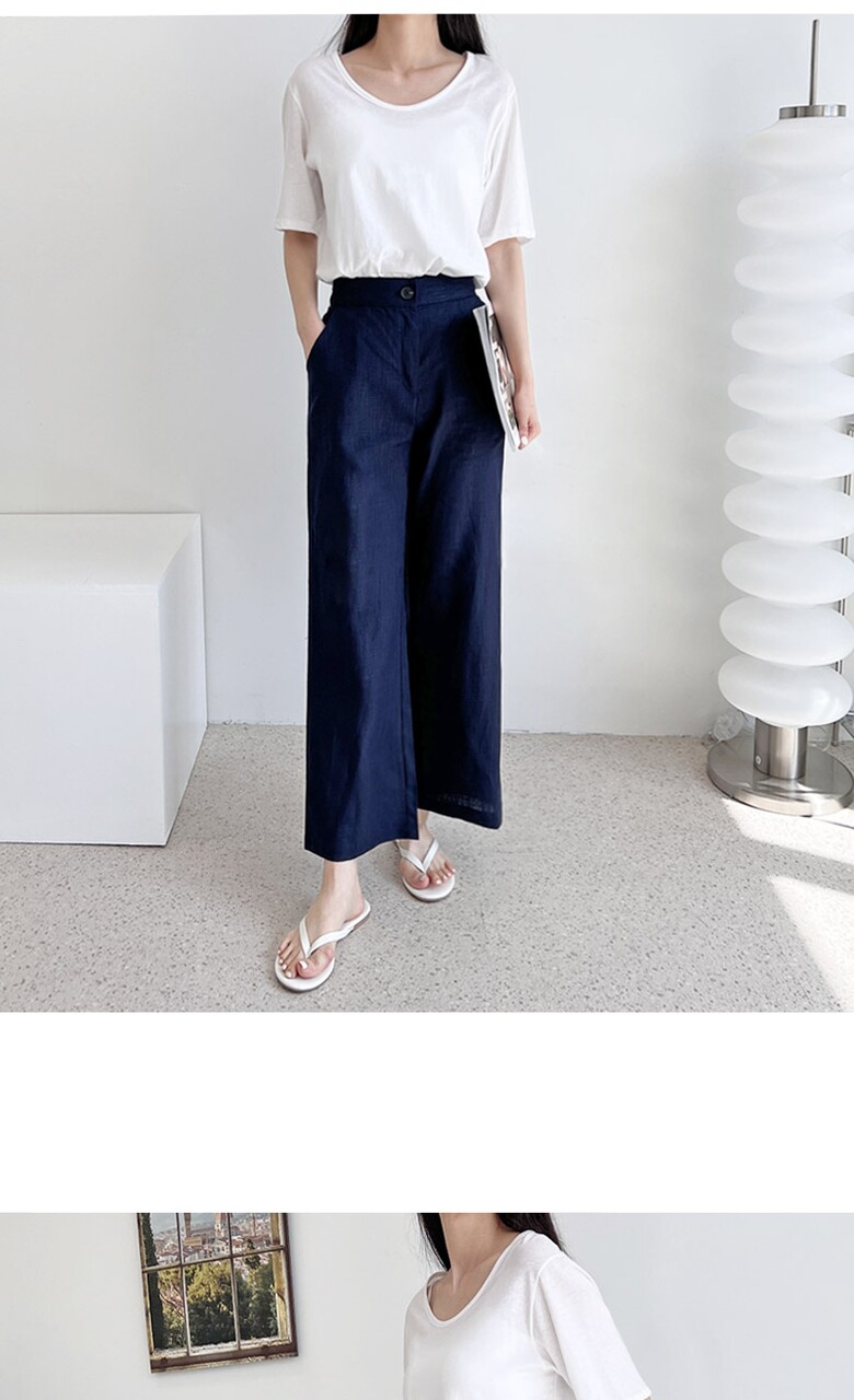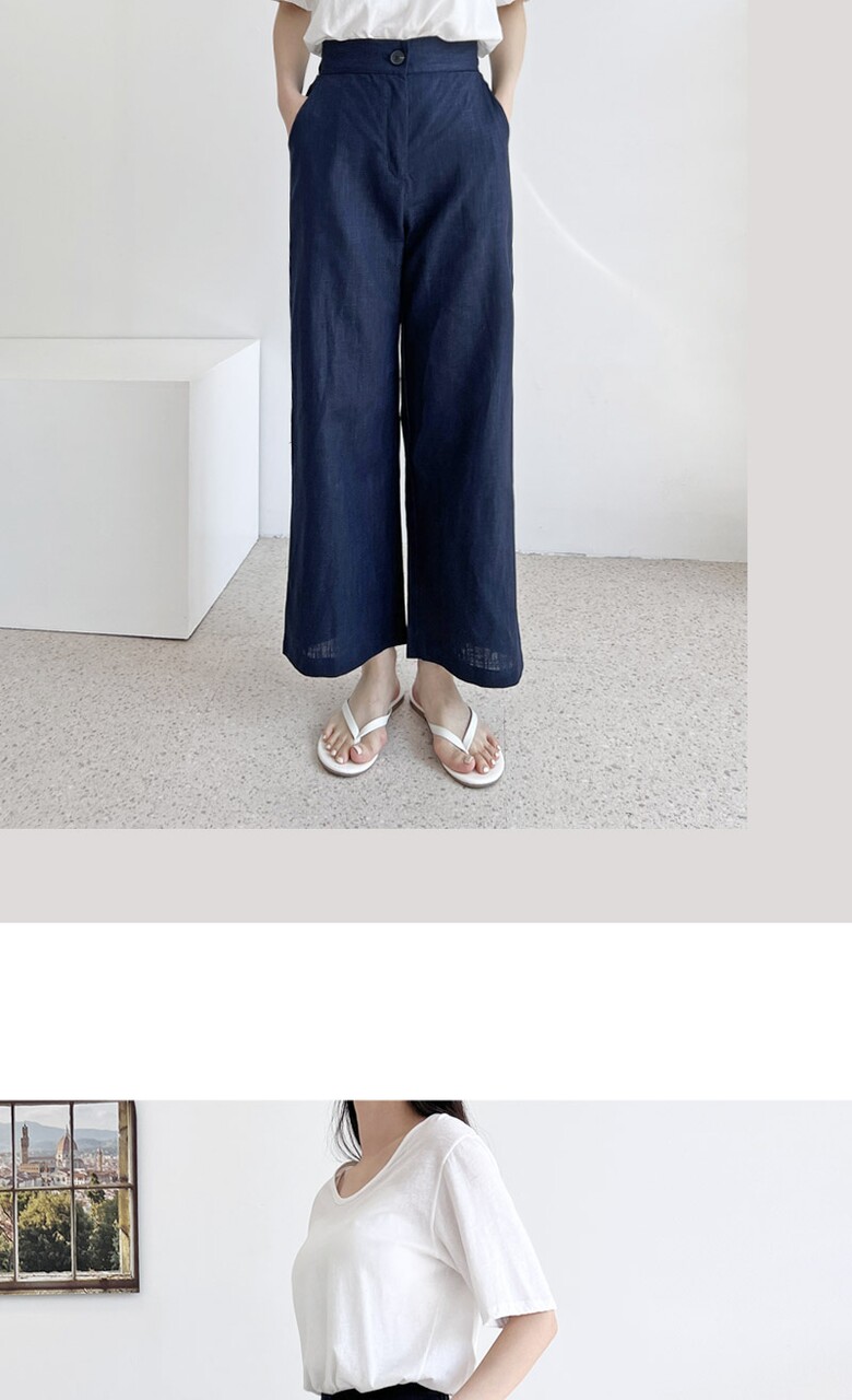 여자 린넨 와이드 뒷밴딩 9부 팬츠 여성 바지