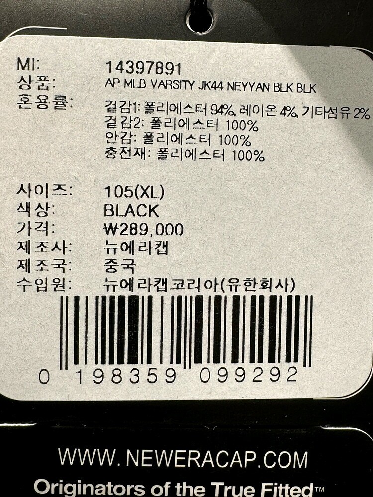 겉감1 : 폴리에스터 94%, 레이온 4%, 기타섬유 2% |