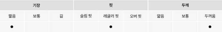 · 핏감 : □ 루즈 ■ 표준 □ 슬림
