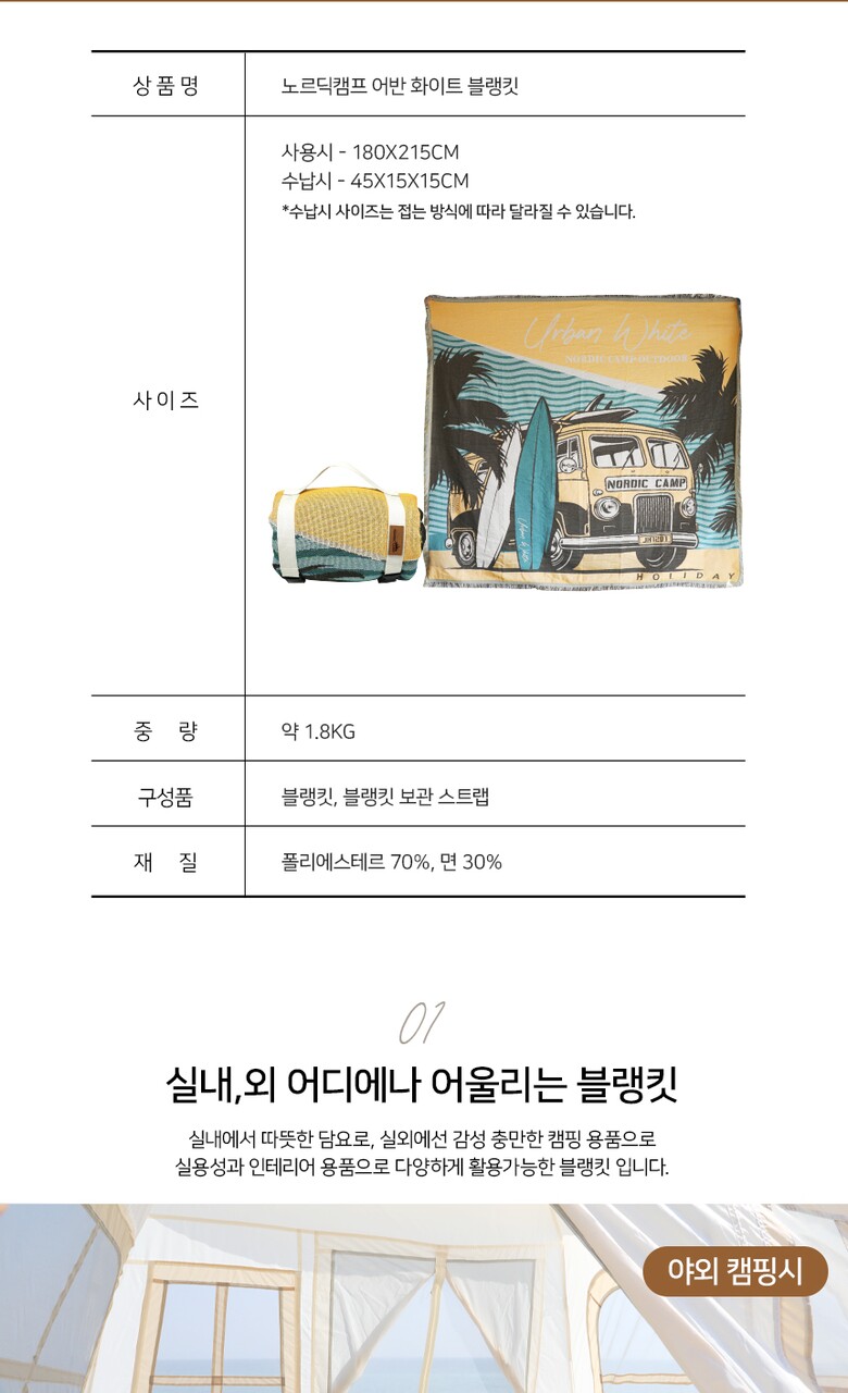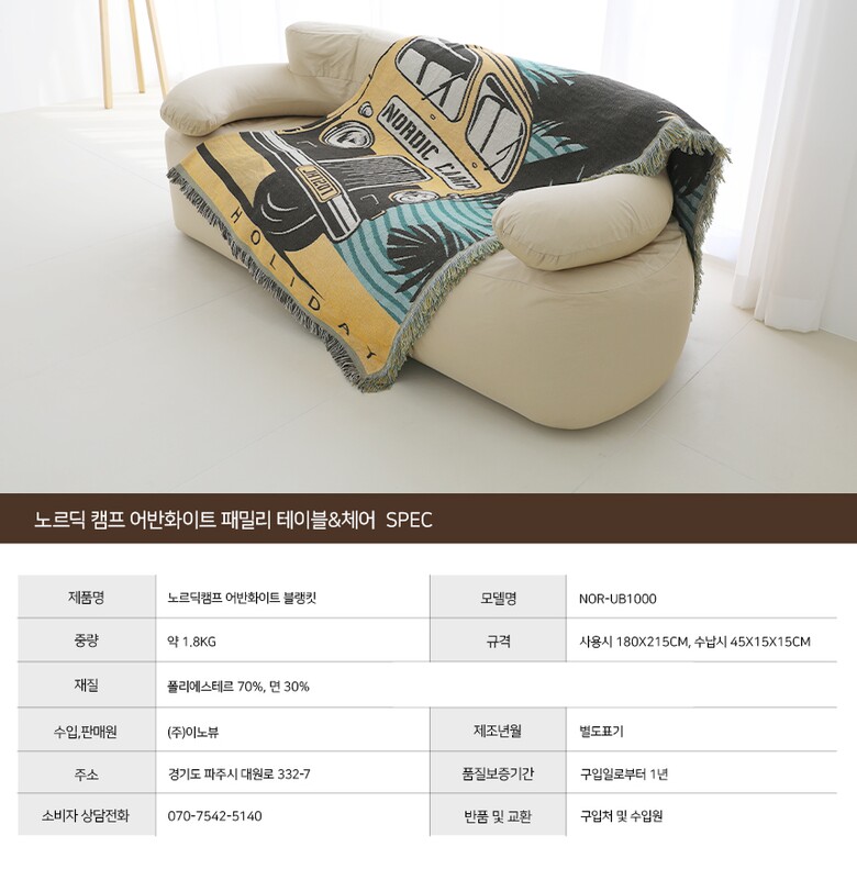 1. 품명 및 모델명 | 노르딕캠프 어반 화이트 블랭킷 NOR-UB1000 |