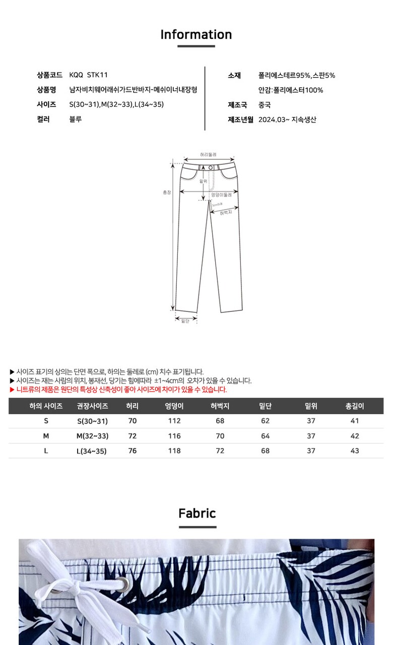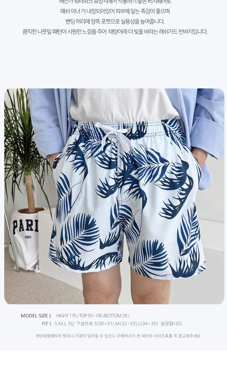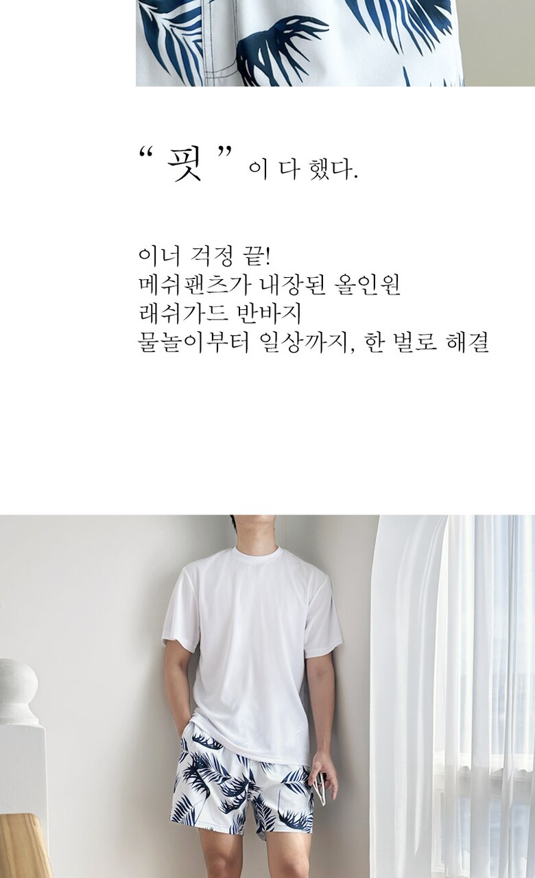 남자 비치웨어 래쉬가드 반바지 메쉬이너 내장형