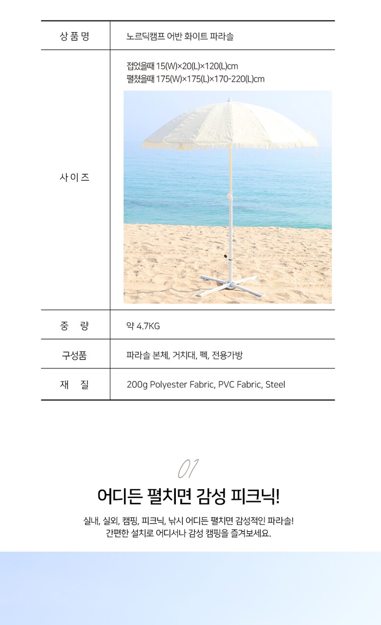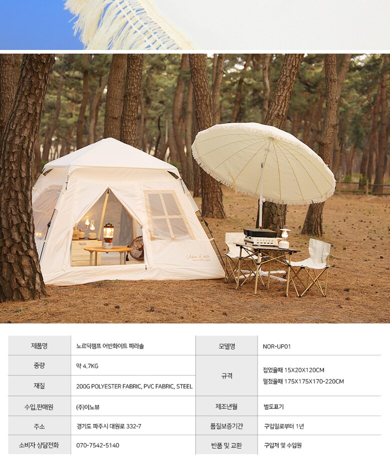 1. 품명 및 모델명 | 노르딕캠프 어반 화이트 파라솔 NOR-UP01 |