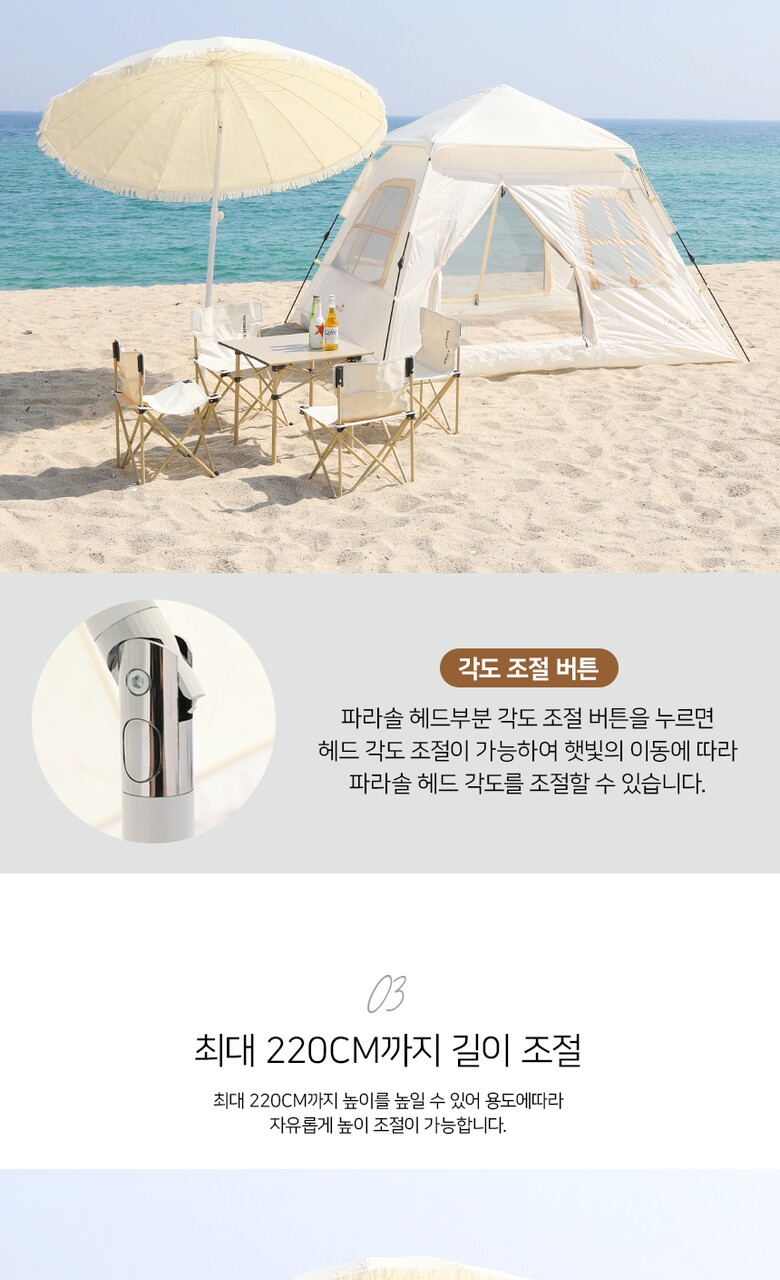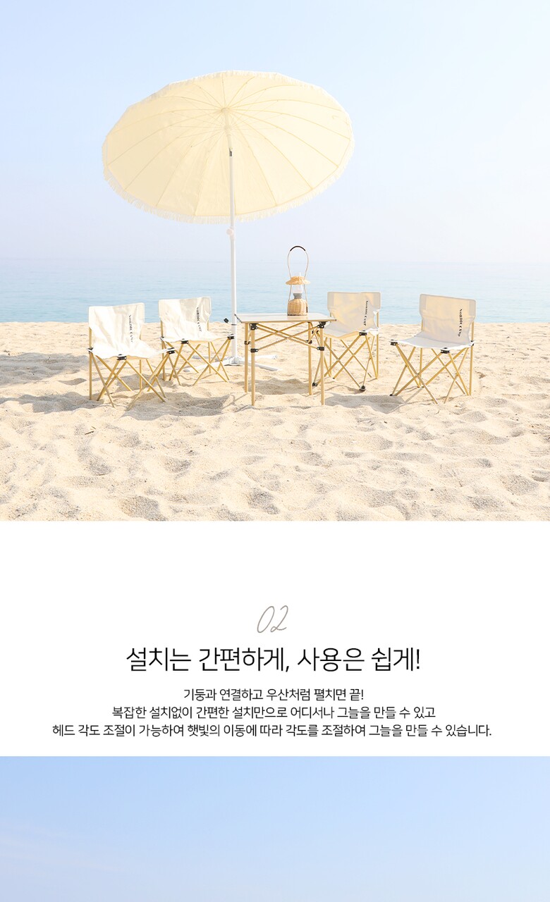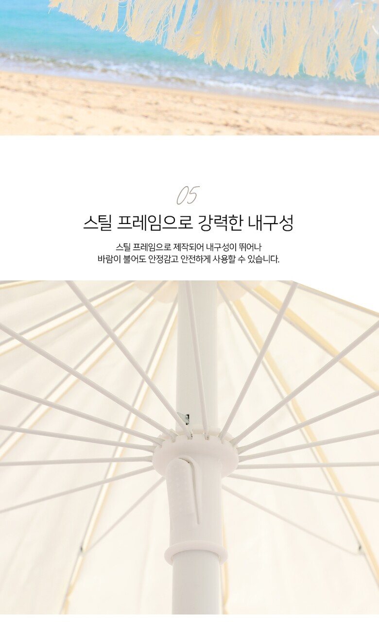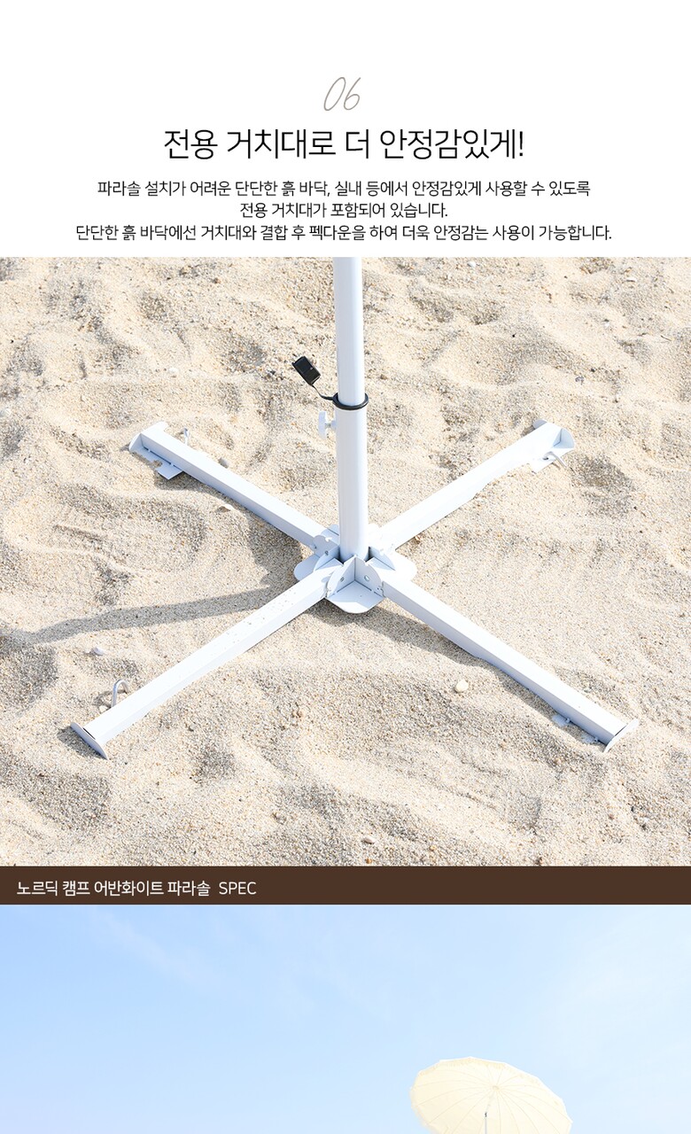 5. 제품 구성 | 파라솔 본체, 거치대, 펙, 전용가방 |