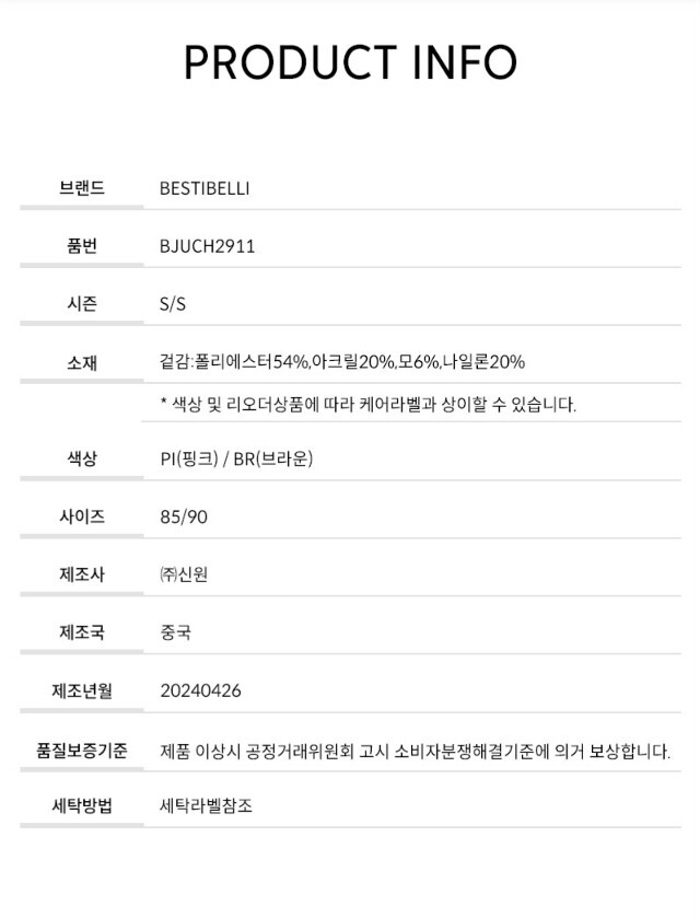 | 6. 세탁방법 및 취급시 주의사항 | 상품상세참조 |