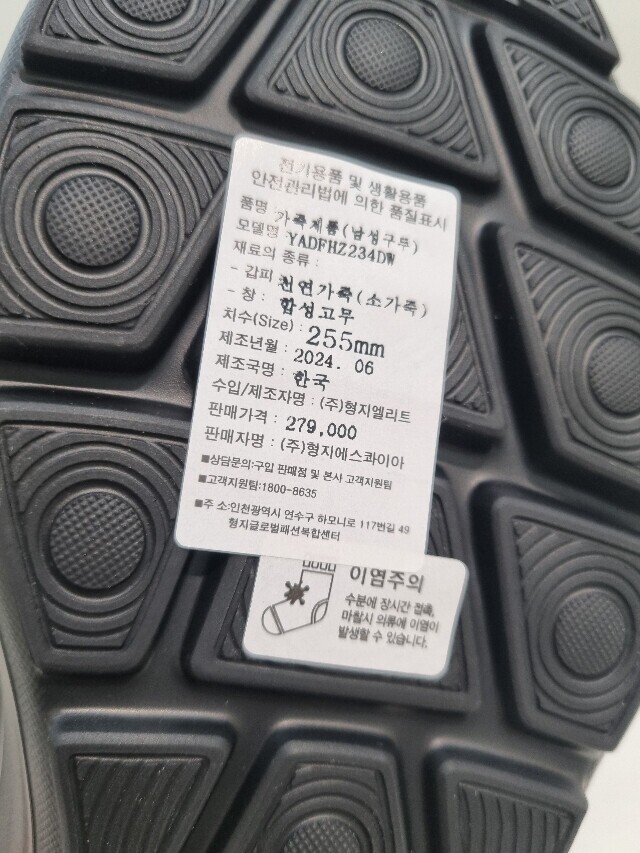 1. 제품 소재 (운동화인 경우에는 겉감, 안감을 구분하여 표시) 소가죽