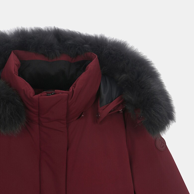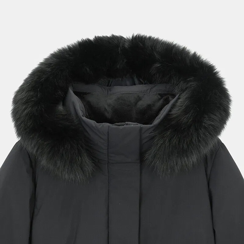 - 탈부착 가능한 폭스퍼가 적용되어 고급스러운 디자인과 함께 보온성 제공