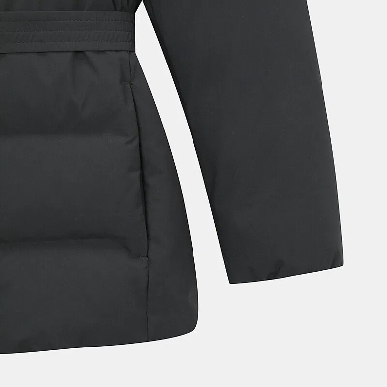 겉감 폴리에스터 100% / 배색 천연모피(여우) 100% / 벨트 폴리에스터 100% / 소맷단 폴리우레탄 28% / 소맷단 폴리에스터 72% / 안감1 나일론 100% / 안감2 나일론 100% / 주머니안감 폴리에스터 100% / 충전재 거위깃털 20% / 충전재 거위솜털 80%