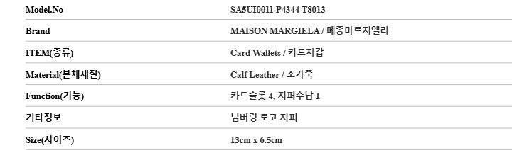메종마르지엘라 SA5UI0011 P4344 T8013 MM6 넘버링 로고 지퍼 공용 카드지갑