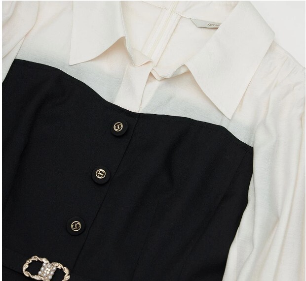 고급스러운 벨트 장식과 셔츠 레이어드 디자인으로 포인트를 주었습니다.