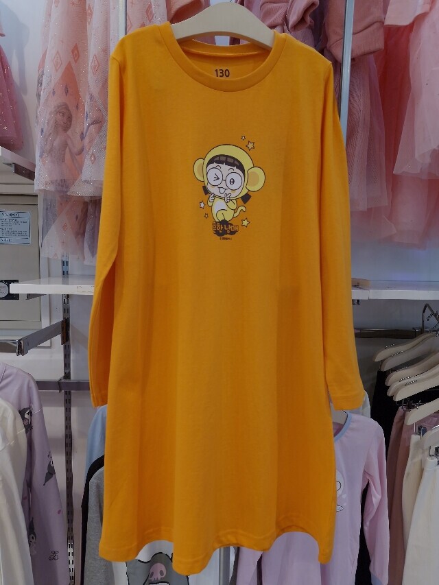 상큼한 오렌지 색상의 신축성좋은 긴팔원피스입니다