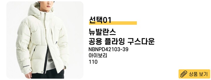 뉴발란스 공용 플라잉 구스다운 NBNPD42103 숏패딩 2종 택1