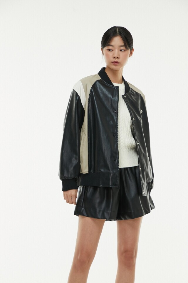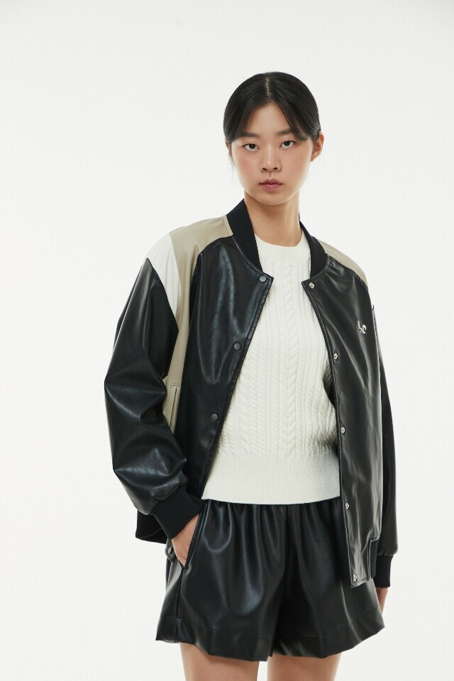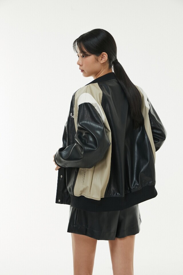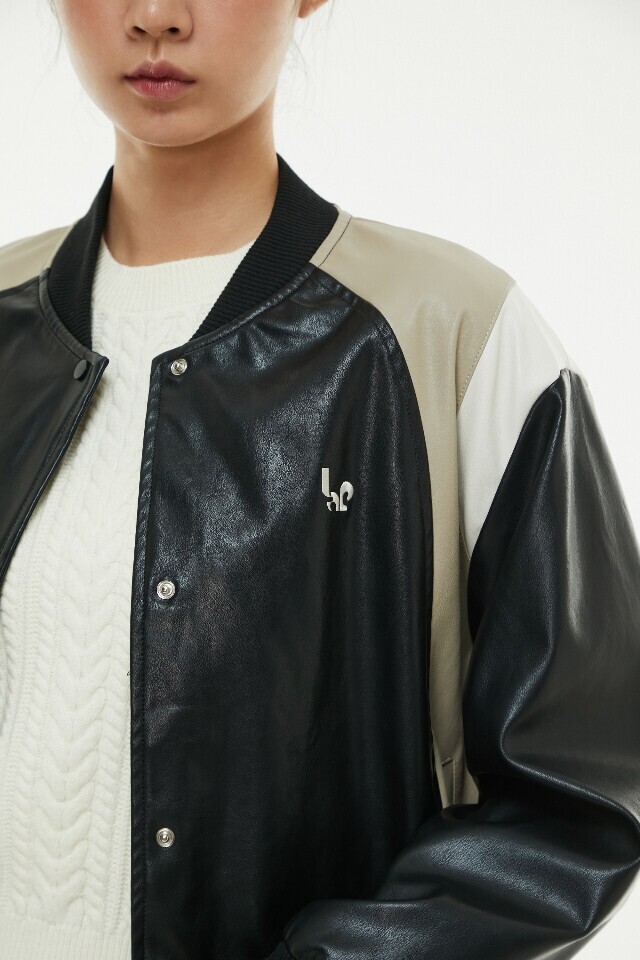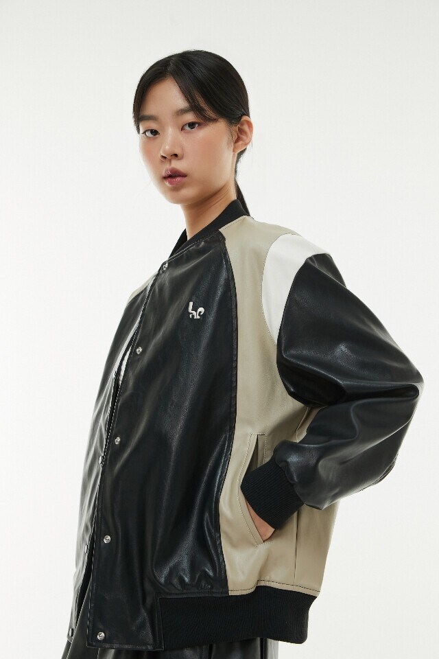 AP3LZ861 로고자수 오버핏 바시티 레더 점퍼