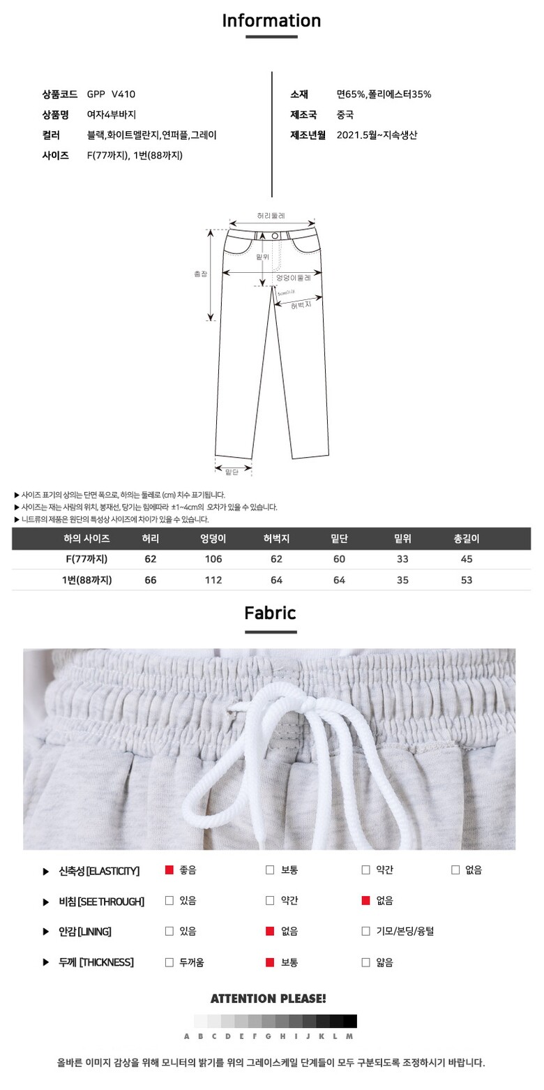 | 1. 제품 소재 (섬유의 조성 또는 혼용률을 백분율로 표시, 기능성인 경우 성적서 또는 허가서) | 상세이미지 참조 |