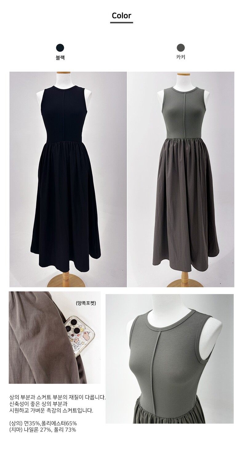 블레오 여성 여름 플레어 레이어드 라운드넥 민소매 롱 원피스