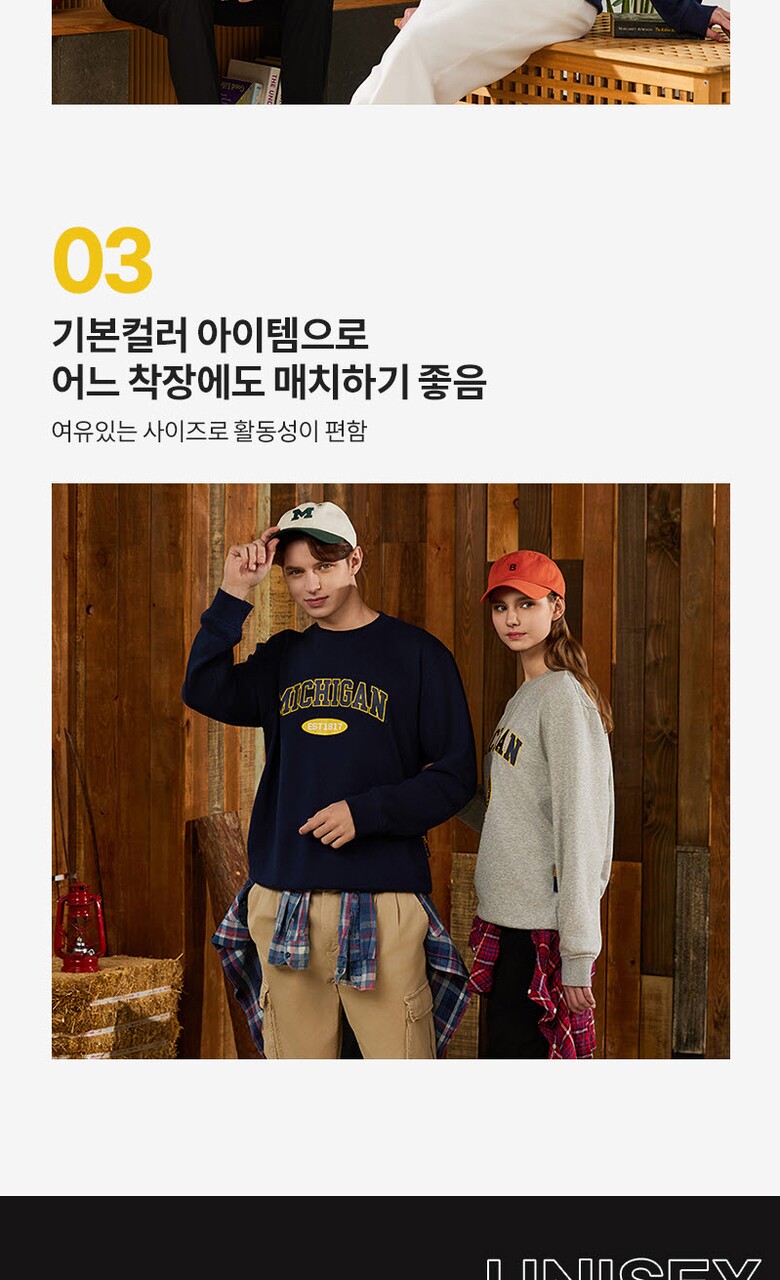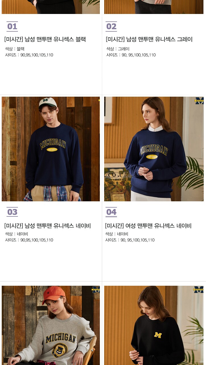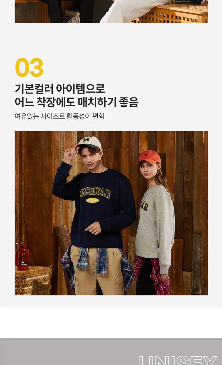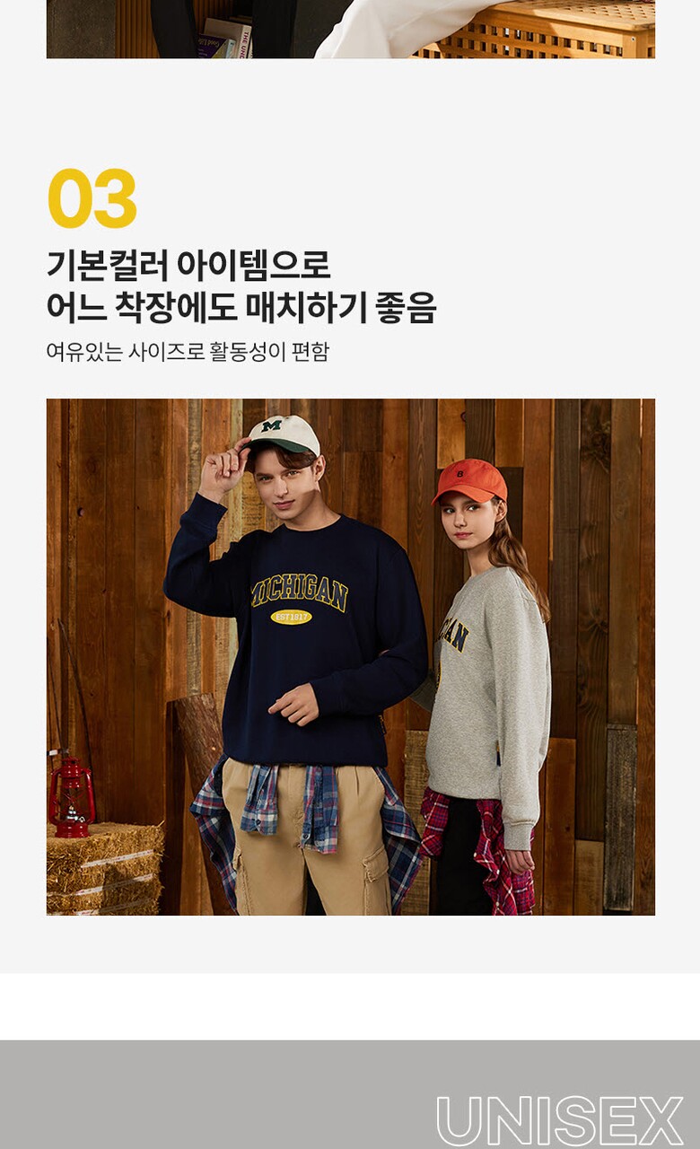 [미시간] 남여 베이직 맨투맨 커플룩