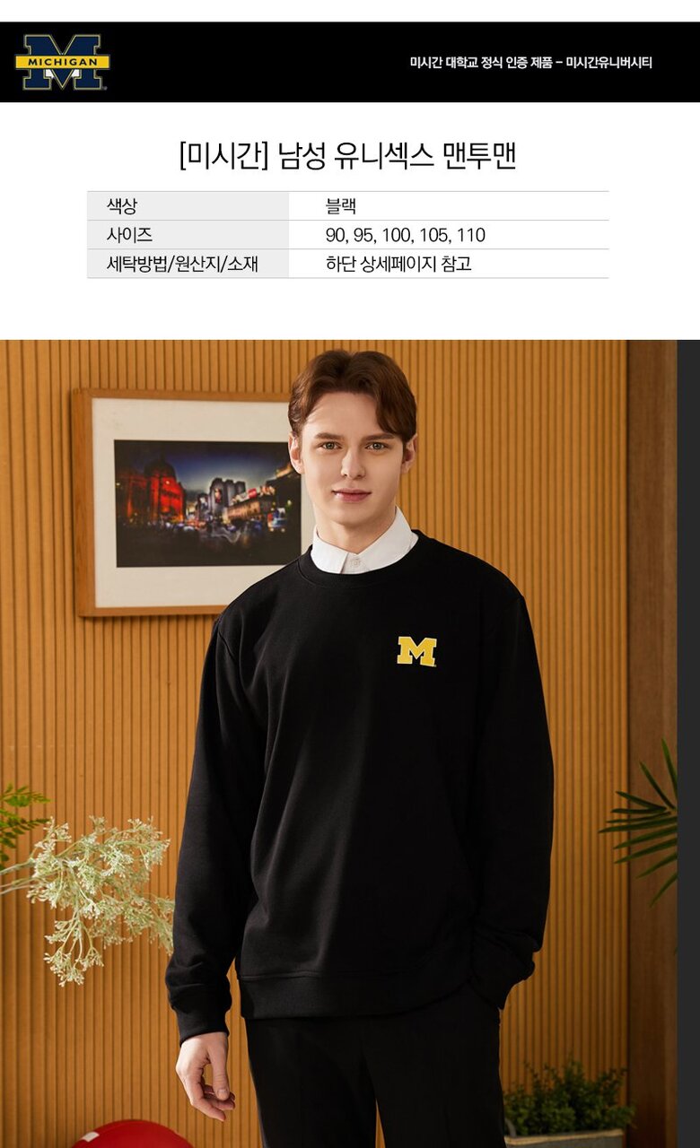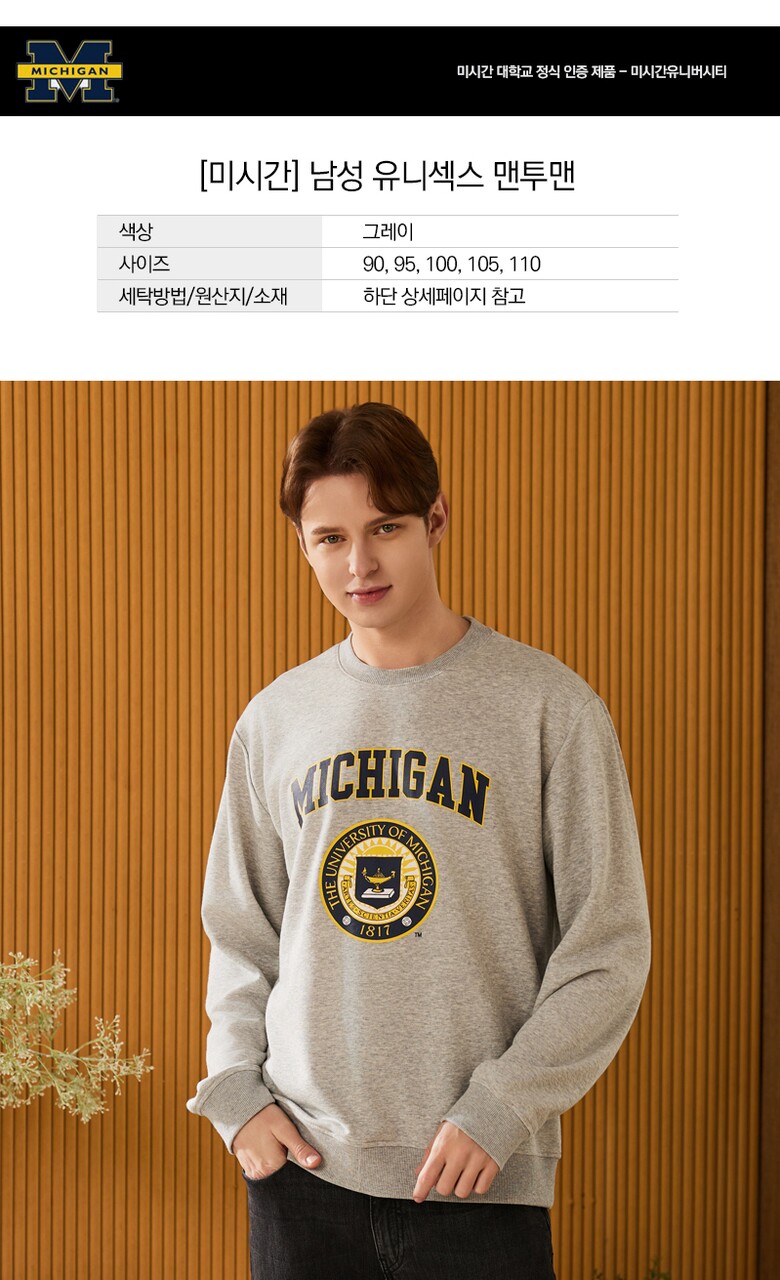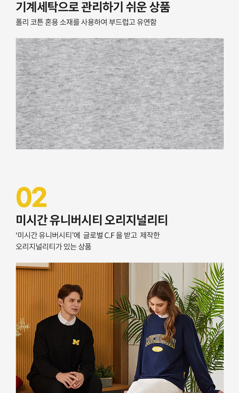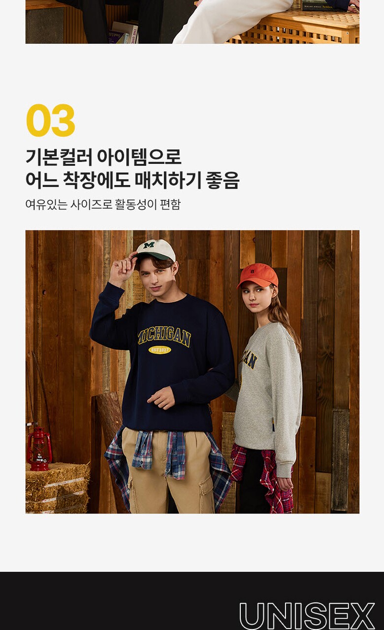 [미시간] 남여 베이직 맨투맨 커플룩