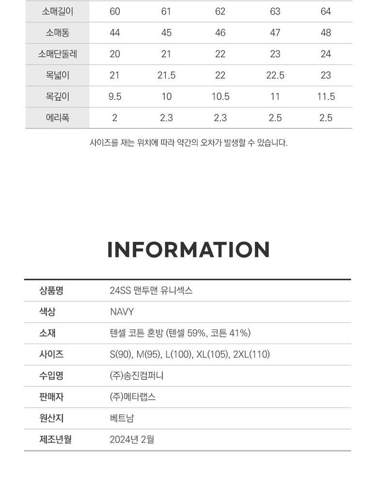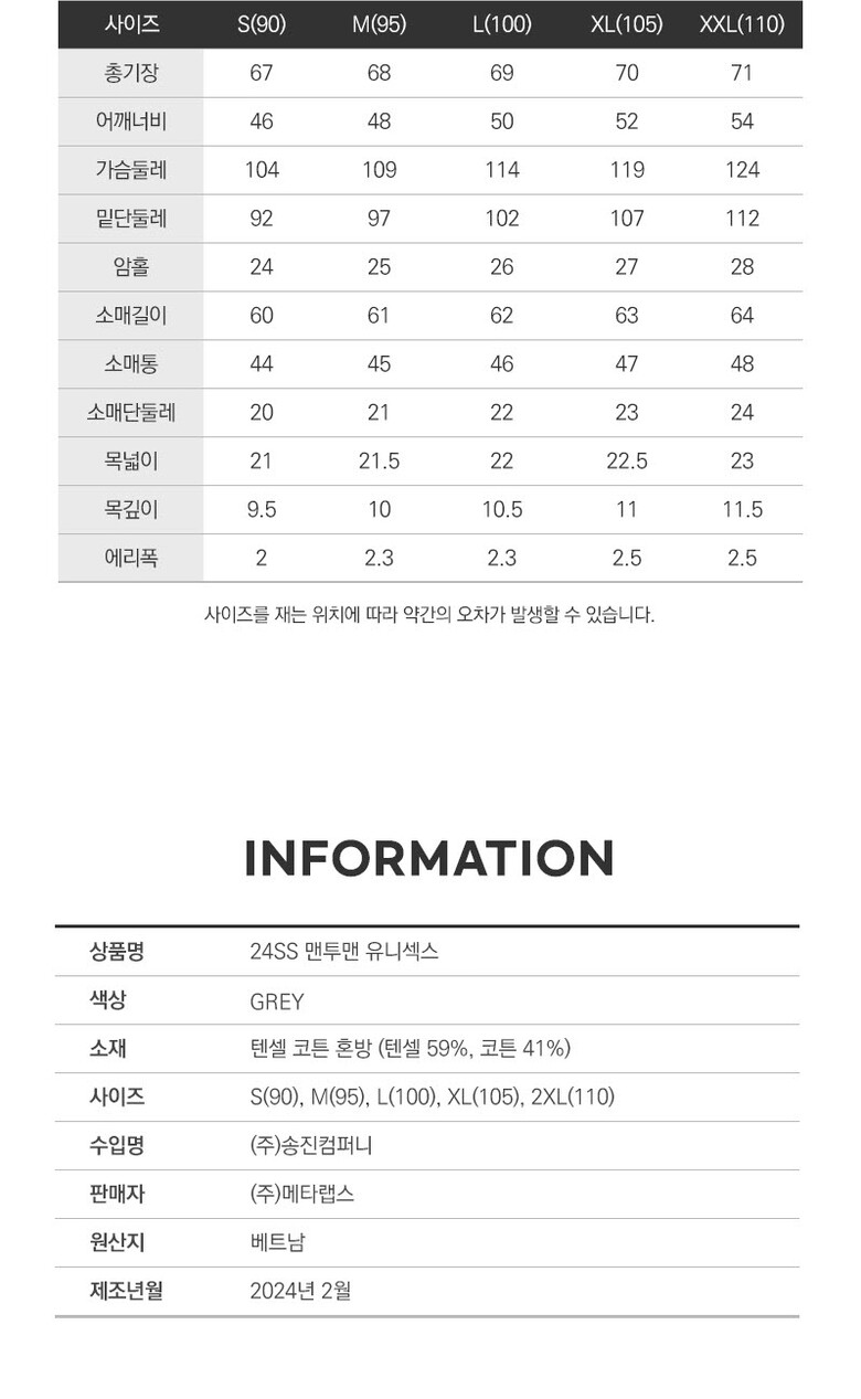 1. 제품 소재 (섬유의 조성 또는 혼용률을 백분율로 표시, 기능성인 경우 성적서 또는 허가서) | 상세페이지참조 |