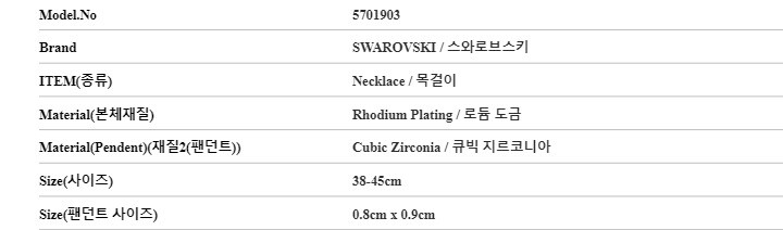 | 7. 주요 사양 | 로듐 도금 목걸이 |