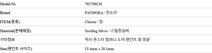 판도라 참 792758C01 디즈니 픽사 몬스터 컴퍼니 도어 펜던트 겸 댕글 실버 팔찌 참 당일발송