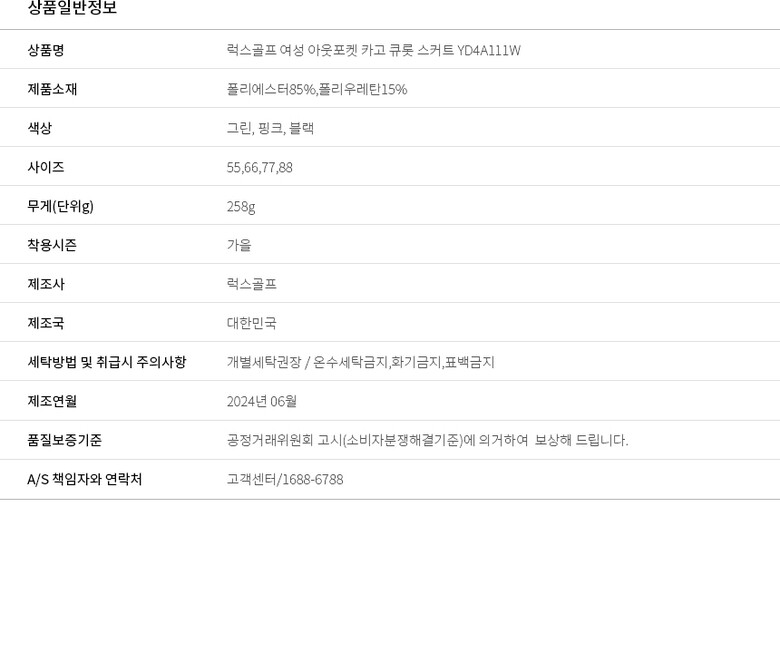 | 1. 제품 소재 (섬유의 조성 또는 혼용률을 백분율로 표시, 기능성인 경우 성적서 또는 허가서) | 상세설명참고 |