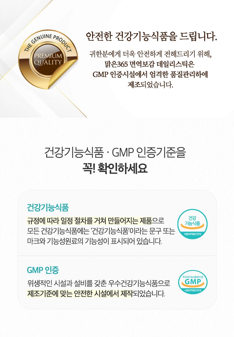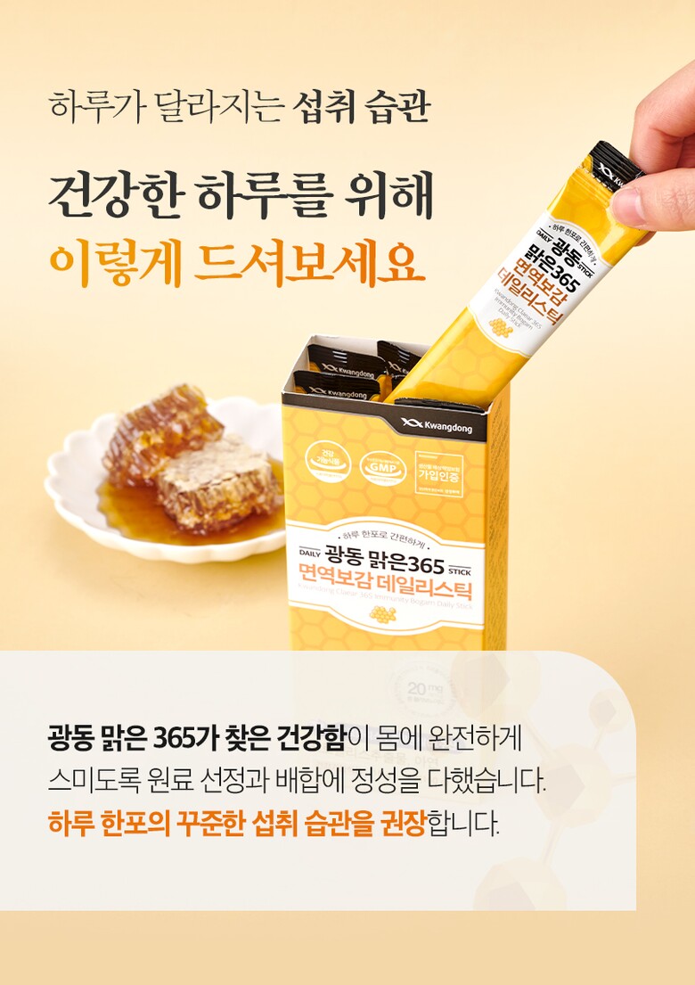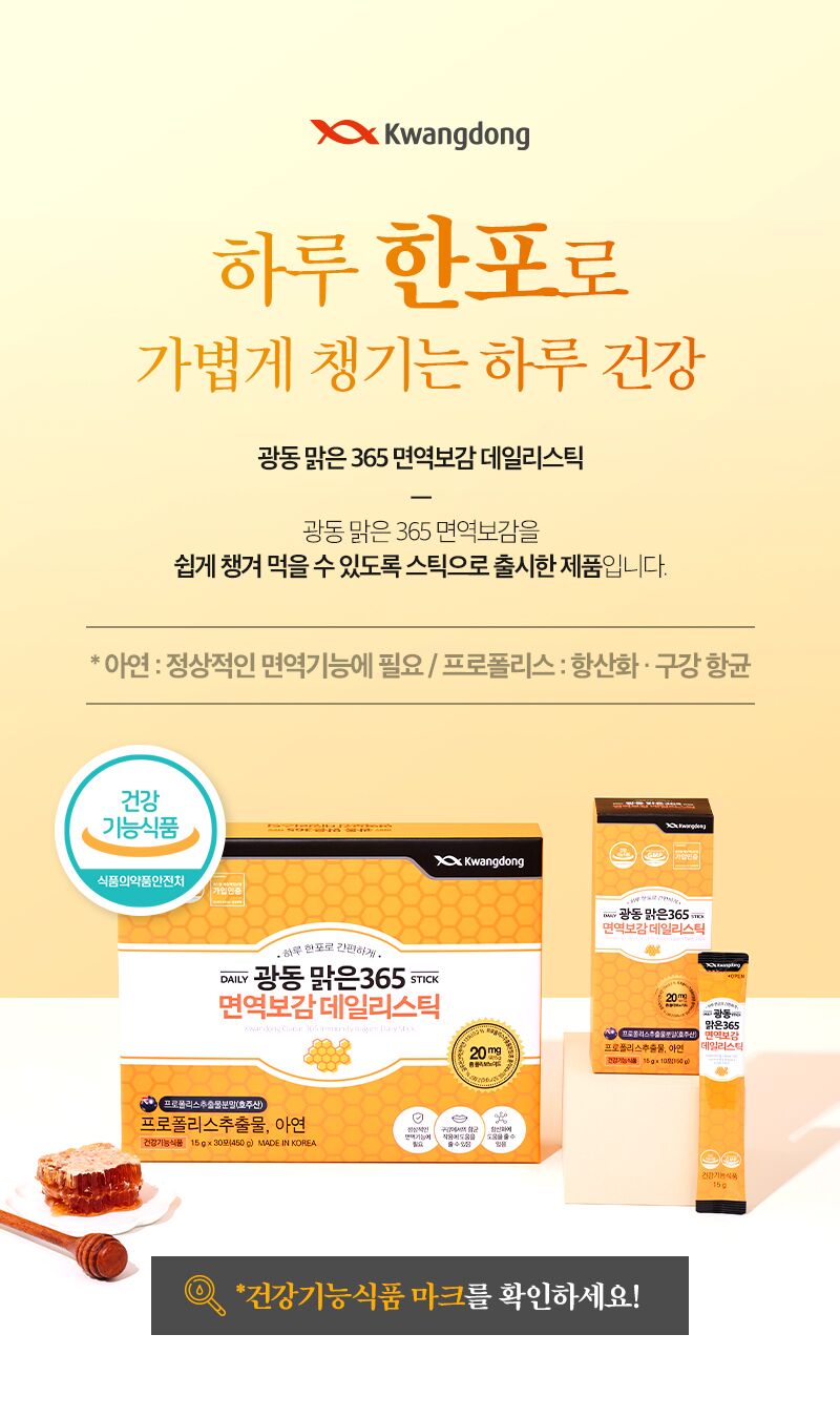 | 1. 제품명 | 광동맑은365 면역보감데일리스틱 |