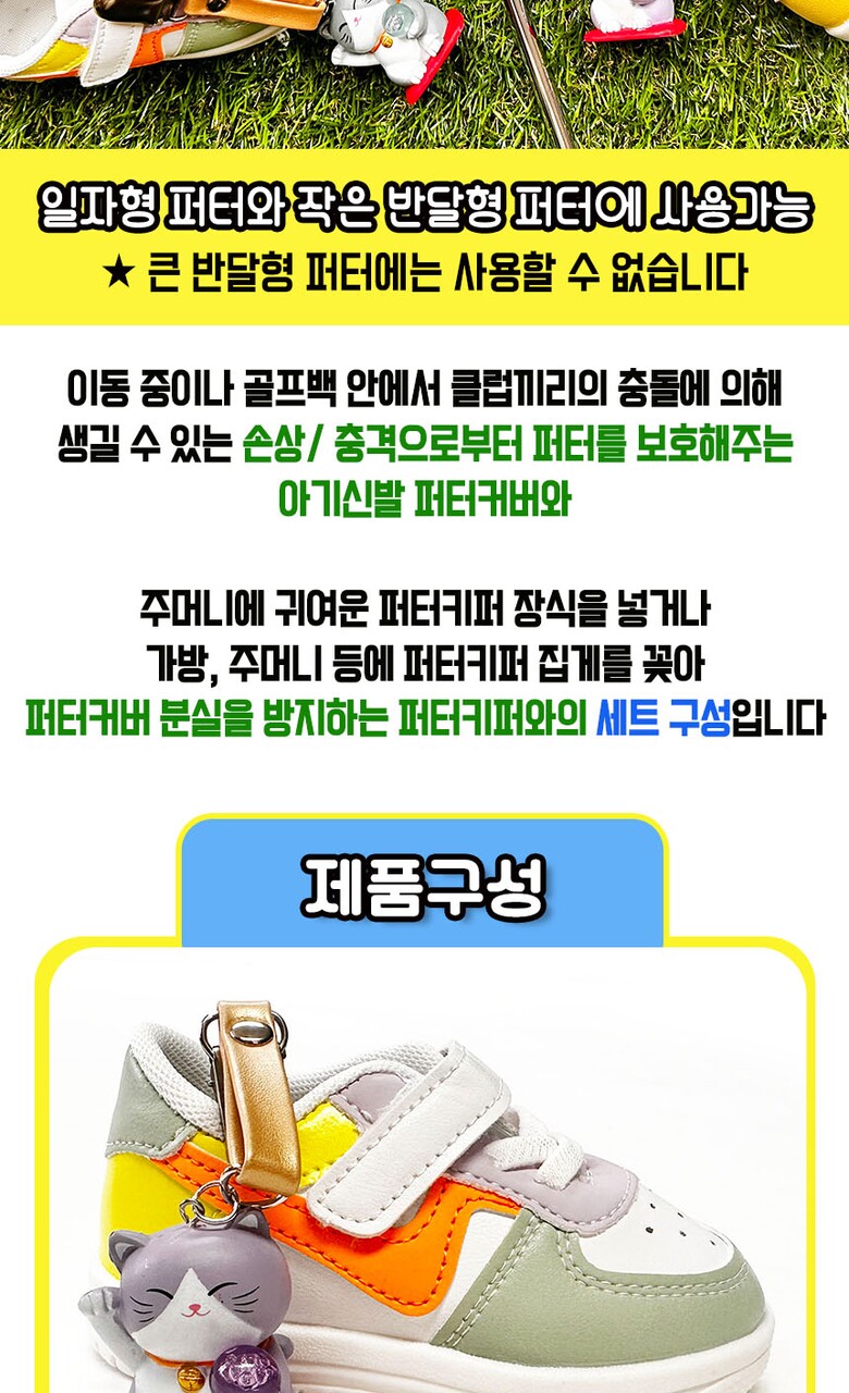 | 3. 색상 | 퍼터키퍼 : 오렌지, 옐로우, 핑크, 그린, 블루, 그레이, 퍼플 / 퍼터커버 : 색상랜덤, 좌우랜덤 |