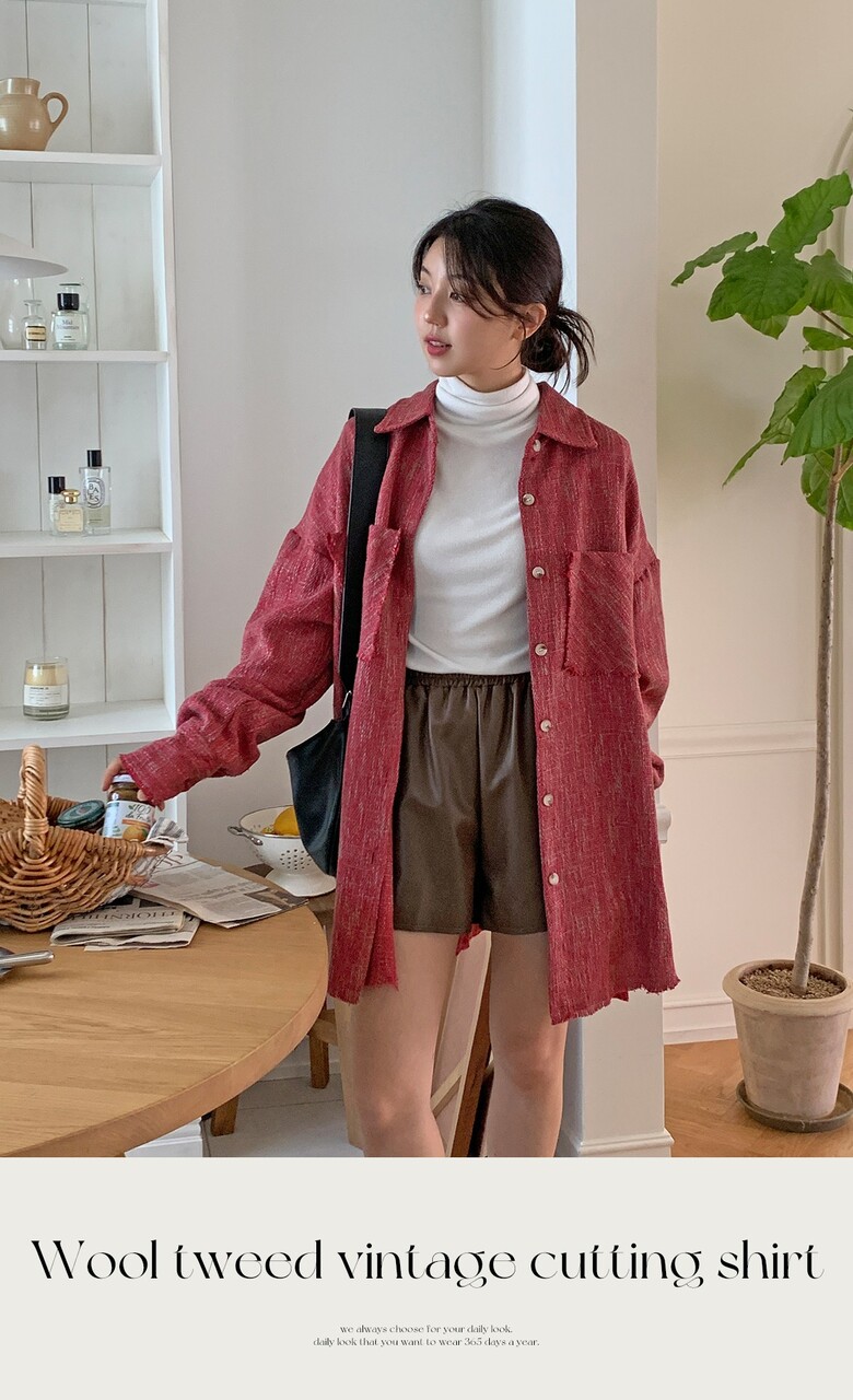 [ 지빌루 울 트위드 빈티지 컷팅 박스핏 남방 ]