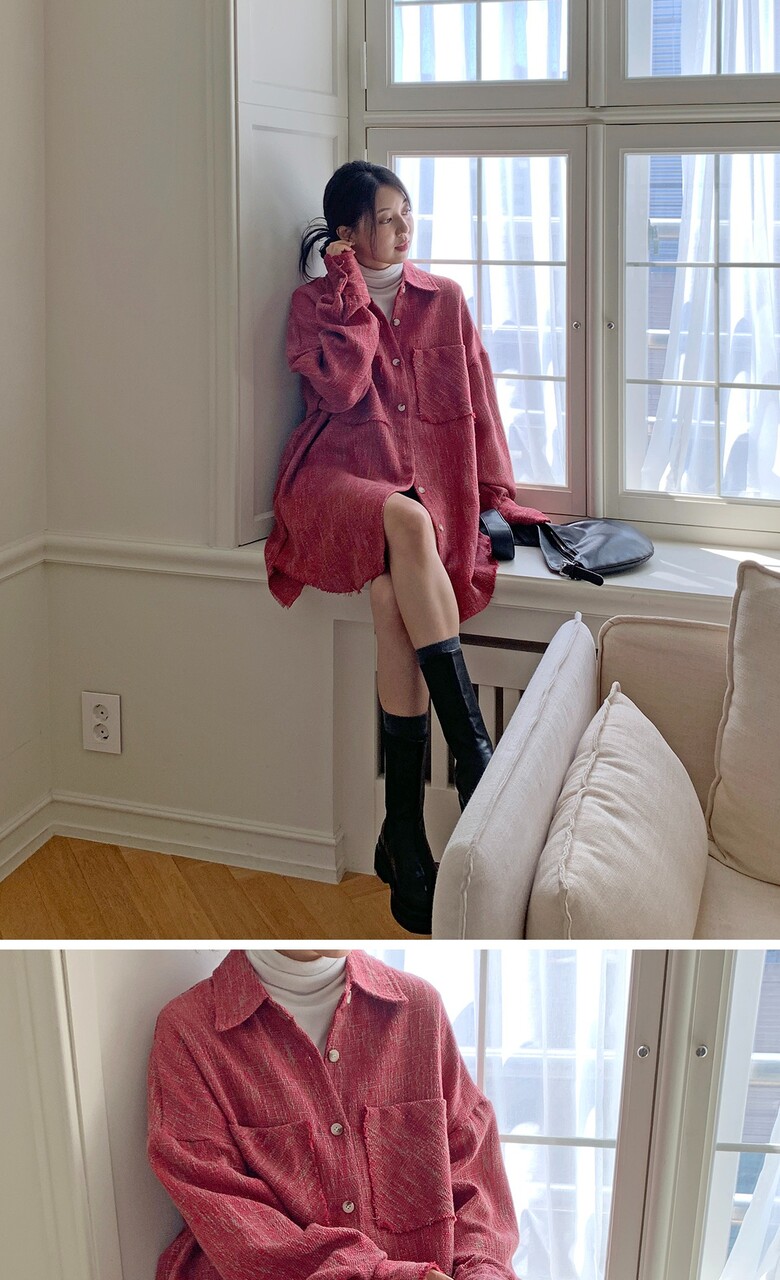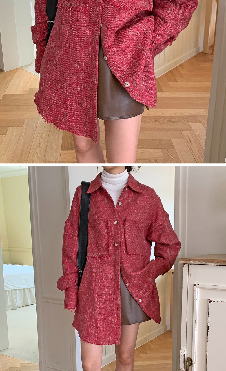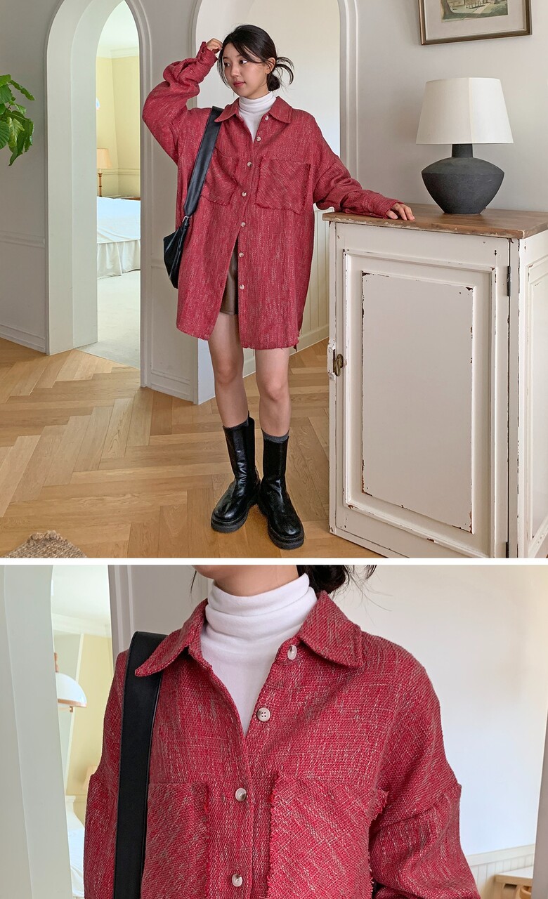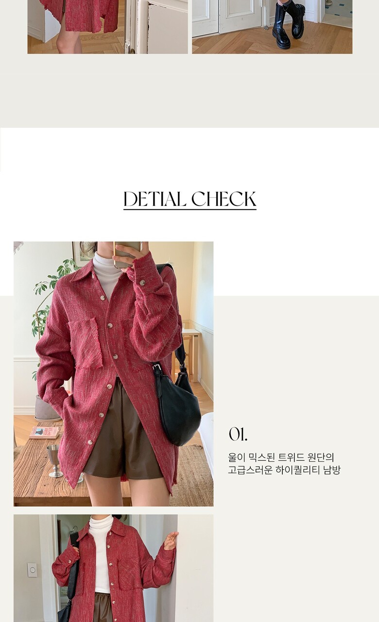 울이 믹스된 트위드 원단으로 고급스러우면서 캐쥬얼한 무드가 매력적인 하이퀄리티 트위드 남방이에요! 넉넉한 사이즈로 다양한 체형에도 여리여리한 실루엣을 연출해주어 꾸안꾸 트위드 남방으로 추천해요~! 컬러는 총 3가지 민트(Mint),레드(Red),블랙(Black) 컬러로 준비했습니다. 사이즈는 FREE로 44~77사이즈까지 착용 가능합니다. ※같은 사이즈라도 체형에 따라 핏감이 조금씩 다를 수 있습니다. 상세사이즈를 확인하셔서 굿초이스해주세요 :) MD.JW